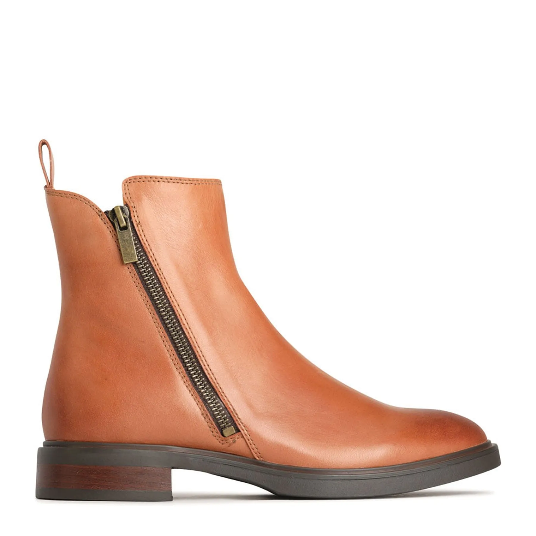 Upgrade your shoe collection with BLAINE ankle boots. Made of aniline leather, these boots feature double metal zips for a stylish touch and an asymmetric cut for an added edge. The outside zip and tab make them easy to slip on and off.