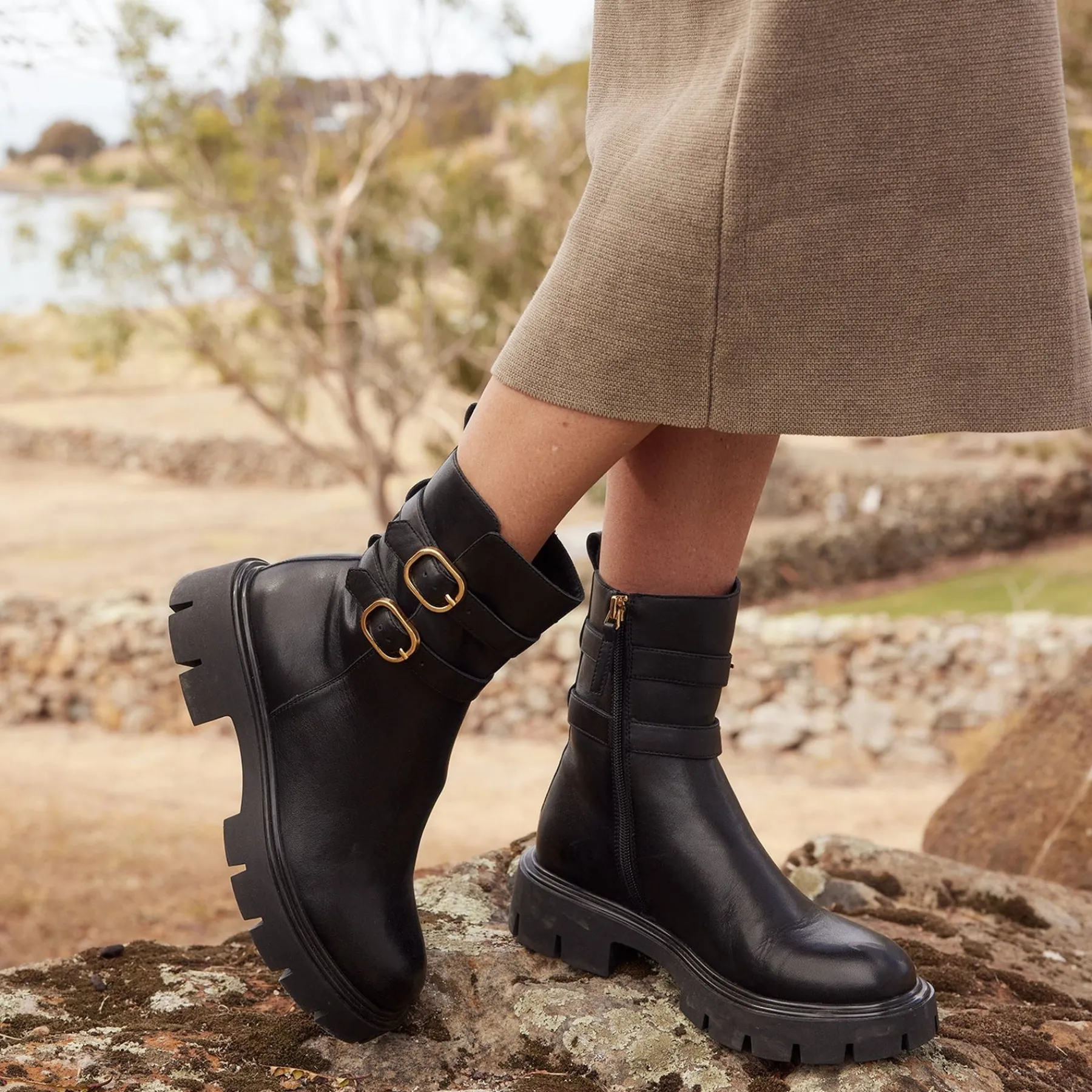 Step out in style and confidence with CAILY leather mid-boots! Featuring a sturdy 40mm block heel and lightweight sole, these boots offer both fashion and function. The classic design is elevated with adjustable double straps and an inside zipper, providing a secure and customisable fit. Take on any adventure in these bold and versatile boots!