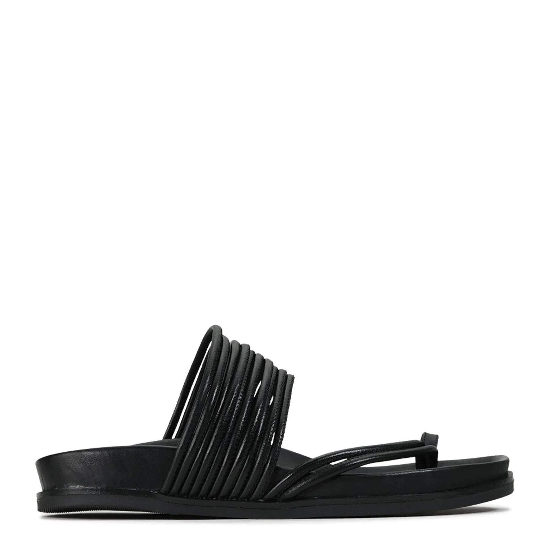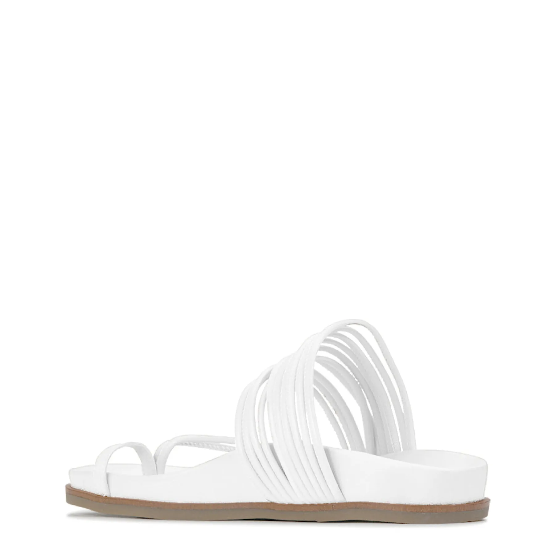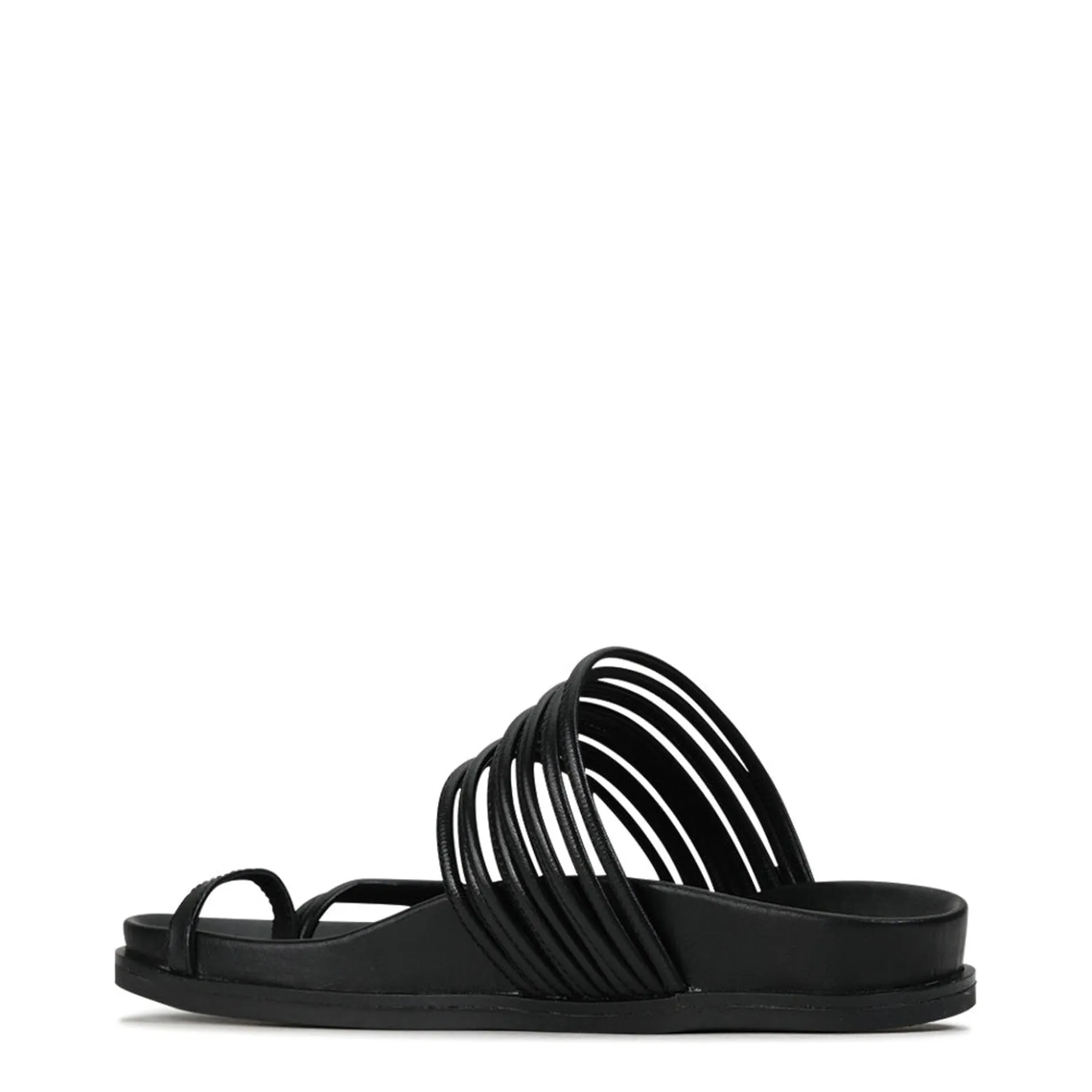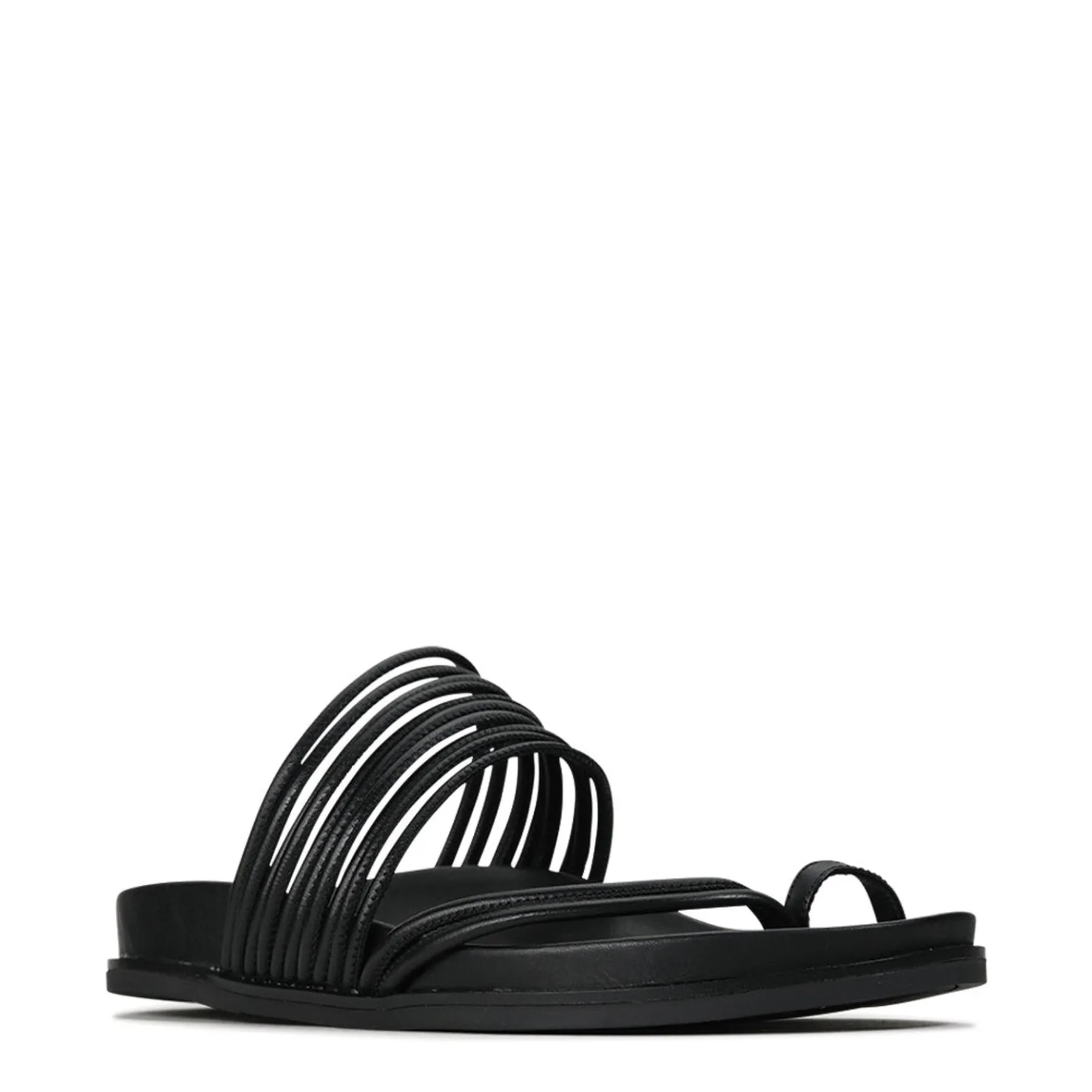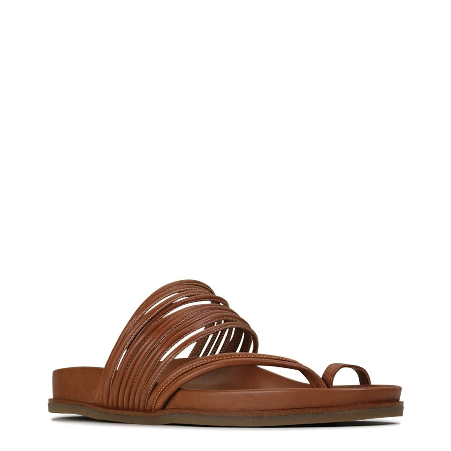 Carmella encapsulates the effortless joy of summer, with a slip-on design that will see you through every social event of the season. These strappy slides are set on a contoured footbed for carefree comfort, while a chic leather toe ring brings an element of edgy modern styling.