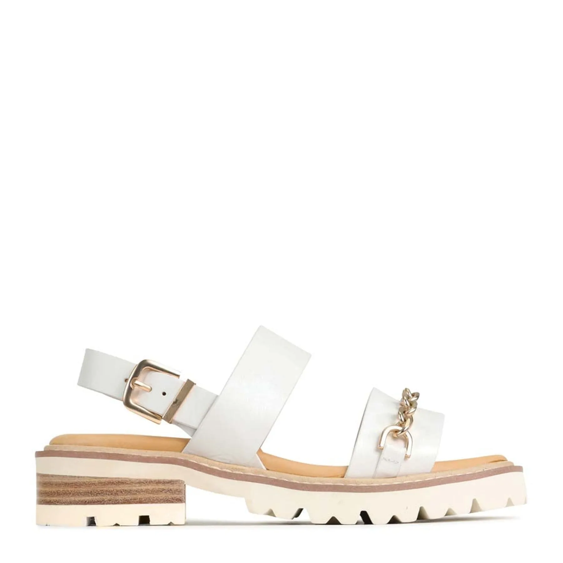 GIL is the perfect slingback sandal for the fashion-conscious. The luxurious leather material and classic design provide sophistication and elegance while the 25mm block heel and metal chain feature provide that extra touch of chic allure. The leather-wrapped footbed offers comfort and stability. GIL is the ideal choice for those looking for a sophisticated yet modern style.