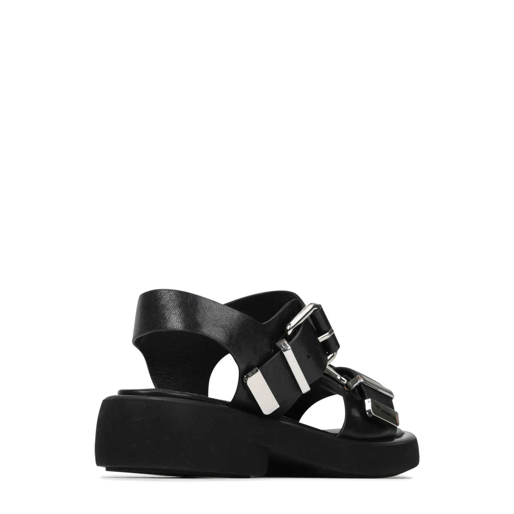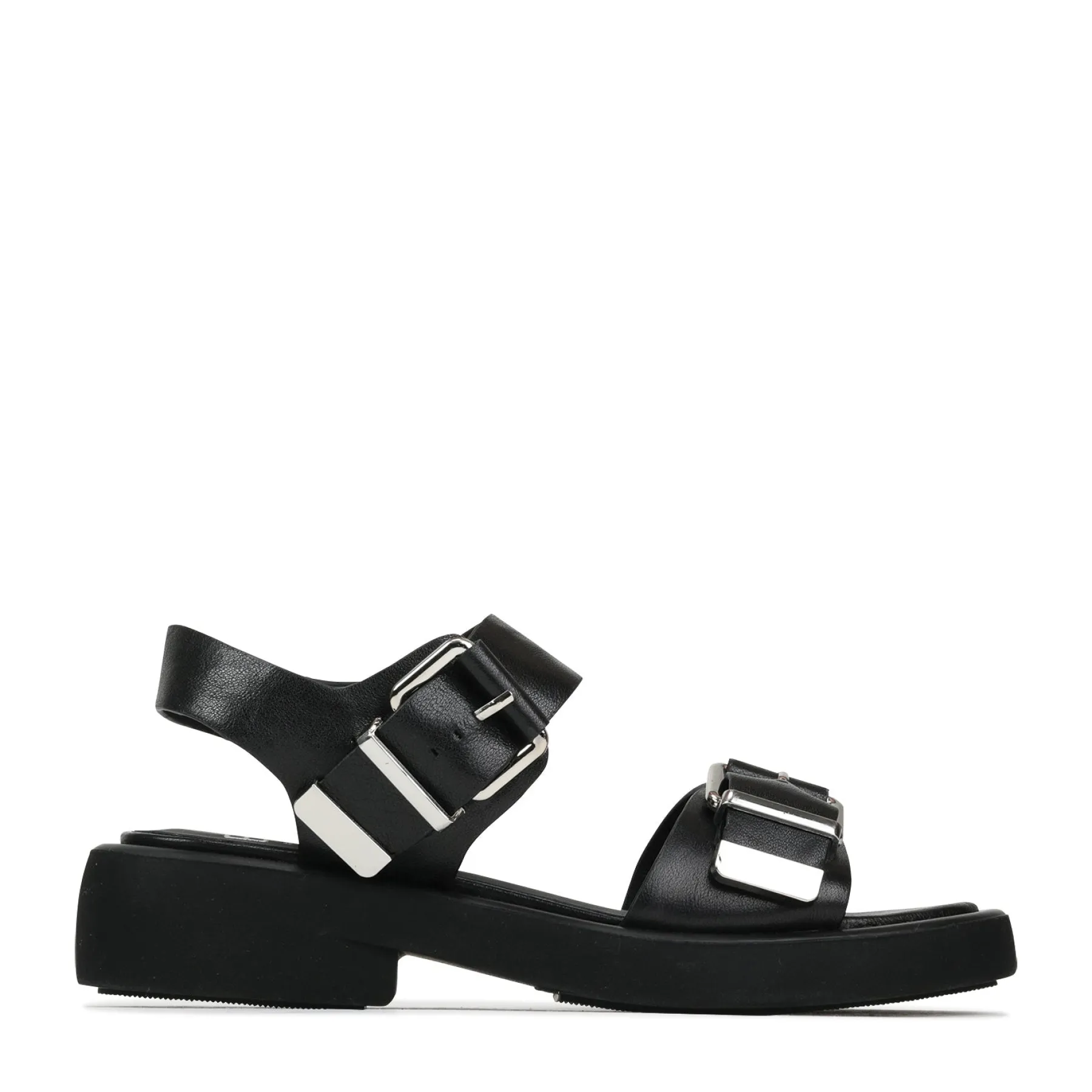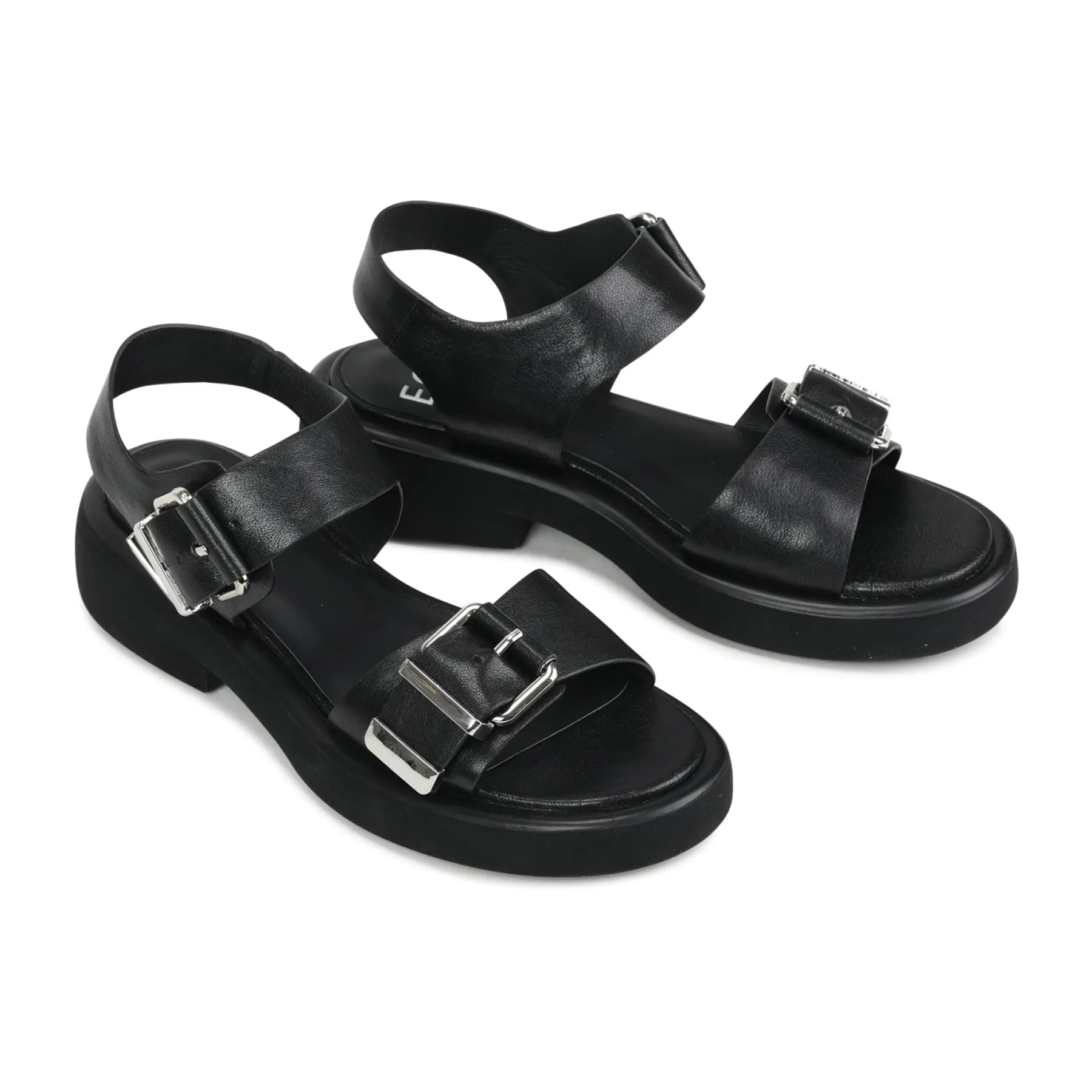 Step into modern sophistication with the ELE Flatform Sandals. These sandals effortlessly combine sleek design with everyday functionality. Featuring bold buckle accents and dual adjustable straps for a secure and tailored fit, the ELE Flatform Sandals are perfect for adding an edgy yet versatile touch to any outfit.