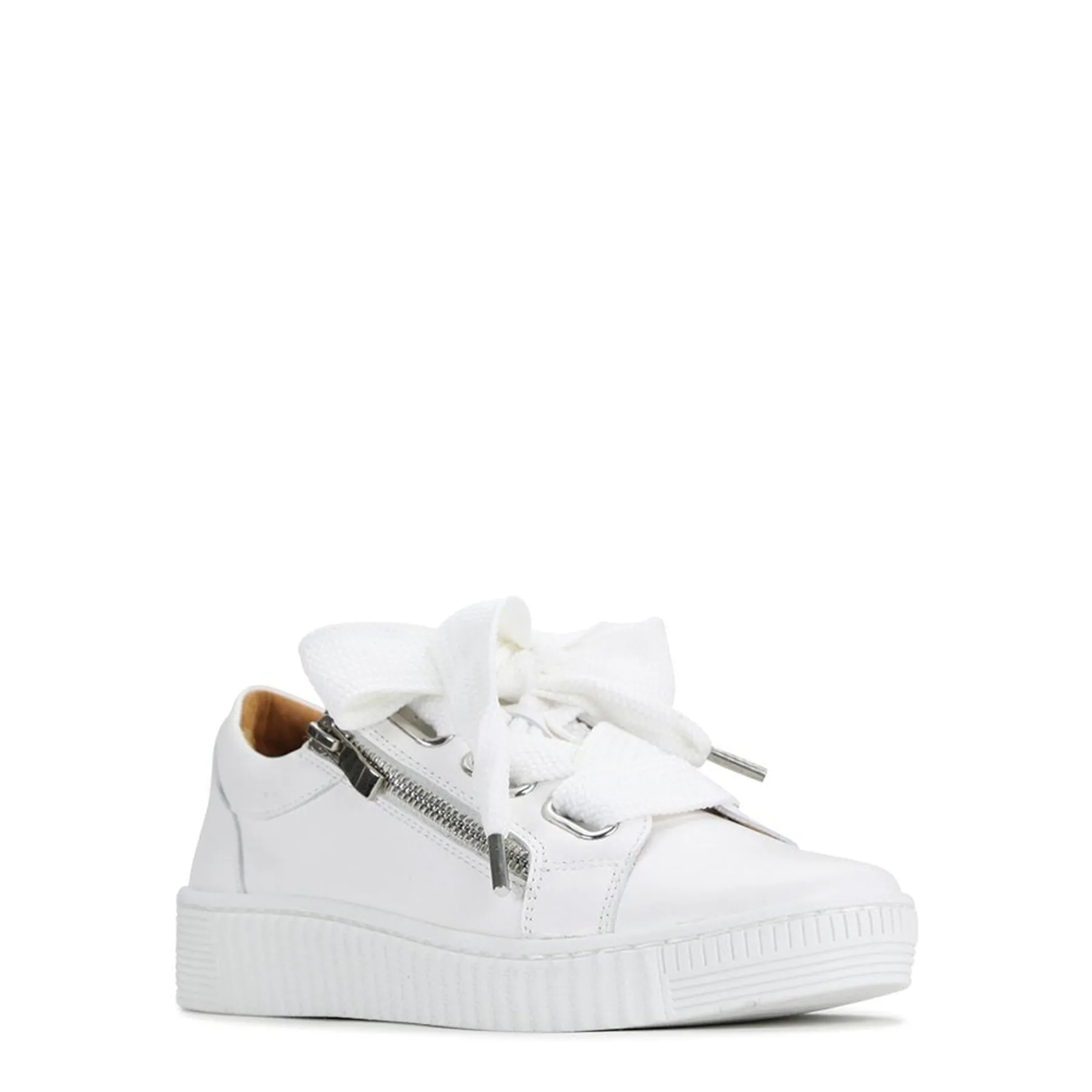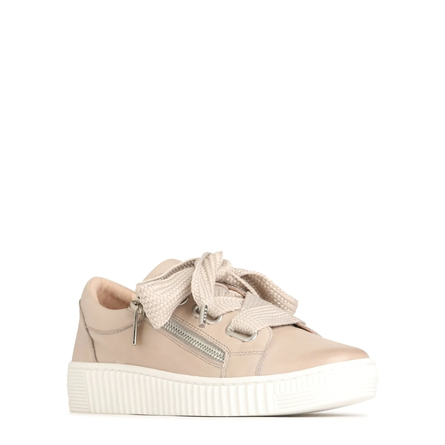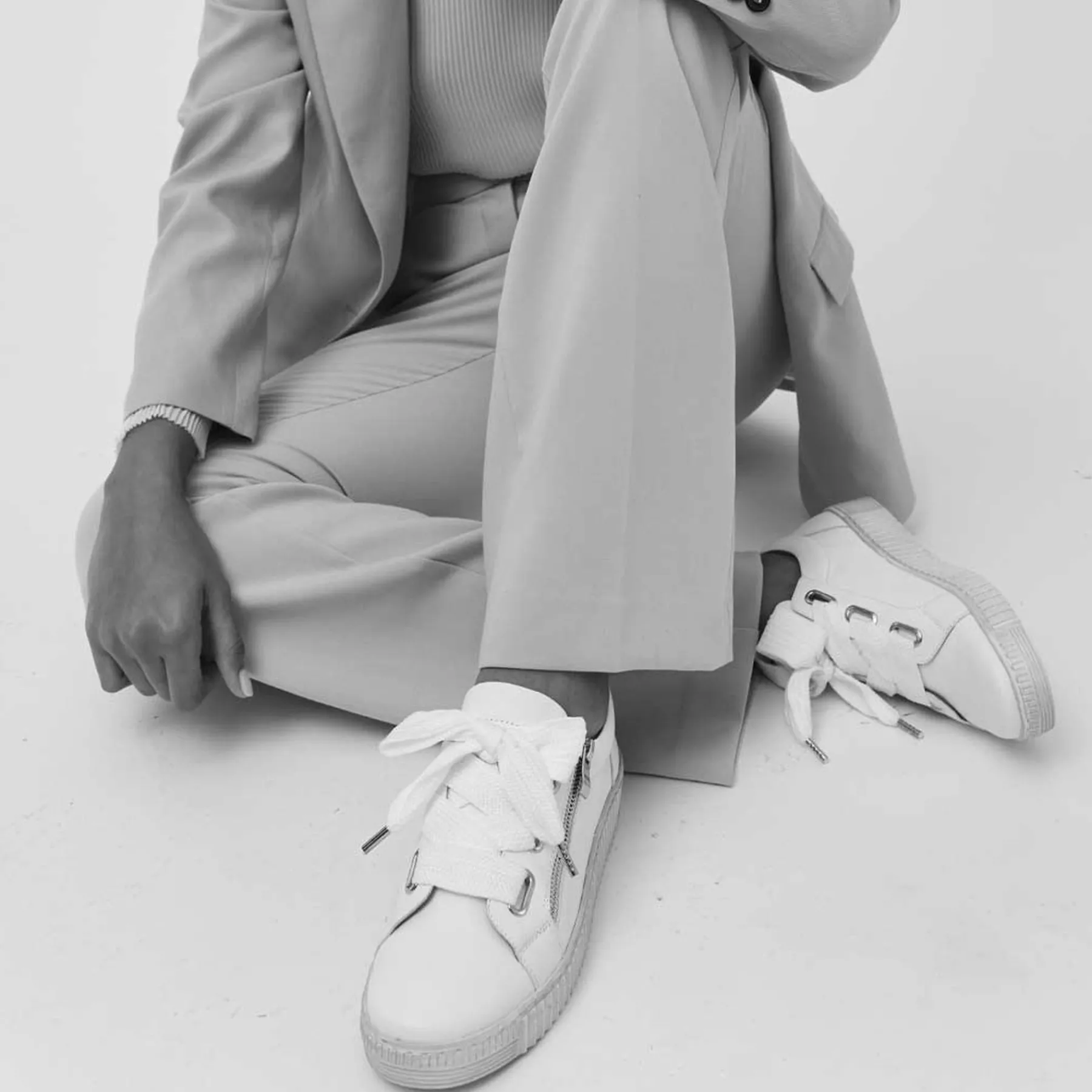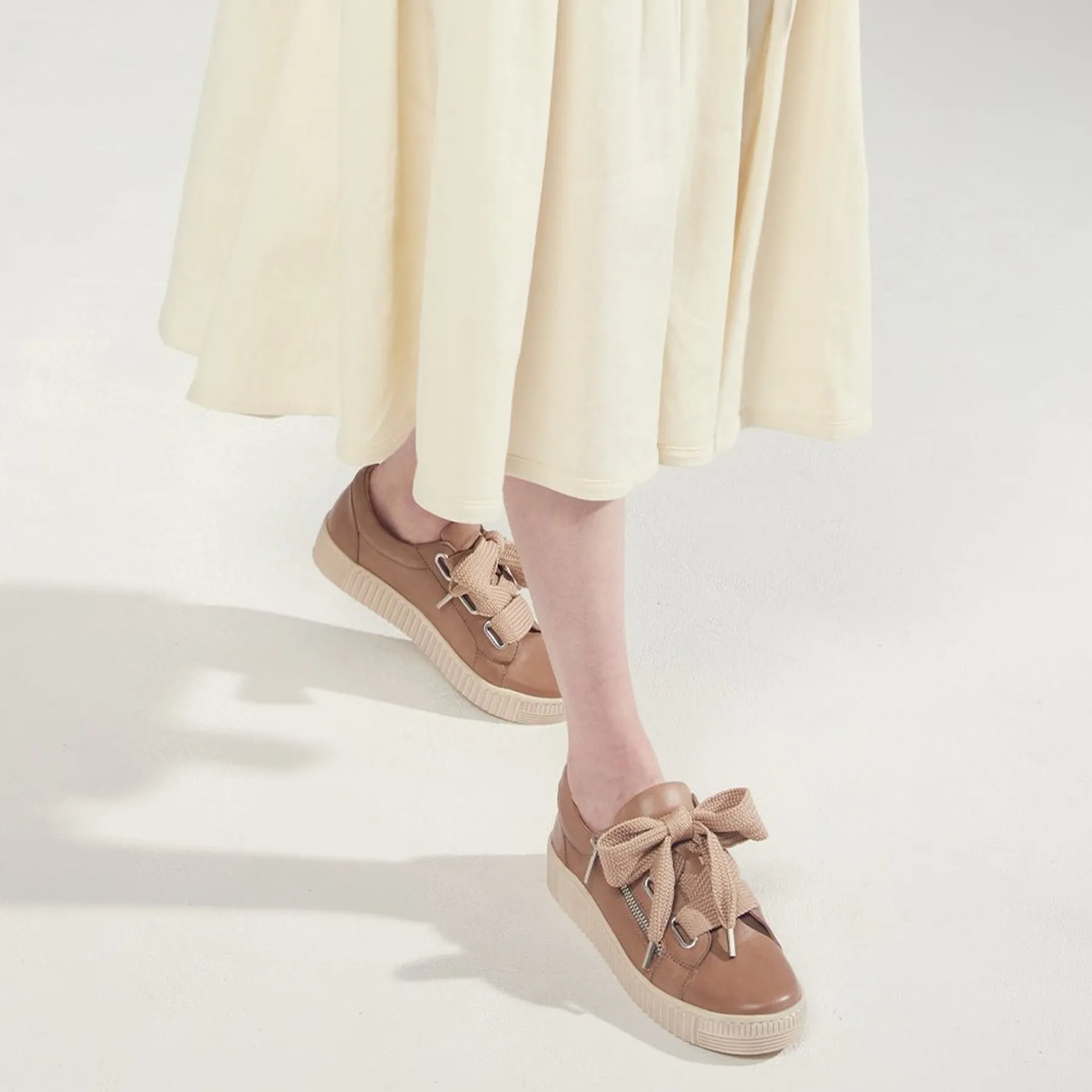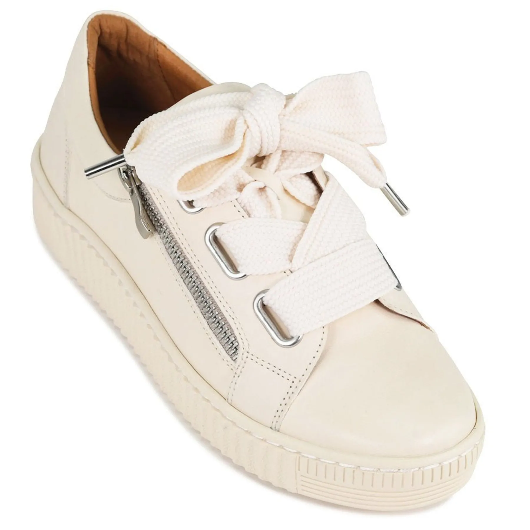 Introducing the JOVI Sneakers SIGNATURE, where style meets convenience. Crafted from soft Cashmere leather made from 100% Aniline Napa, these sneakers are highly breathable for all-day comfort. Featuring an outside zip hardware, these sneakers ensure you never have to tie your shoes again. The oversized statement laces add a bold touch, elevating your look for effortless style every day.