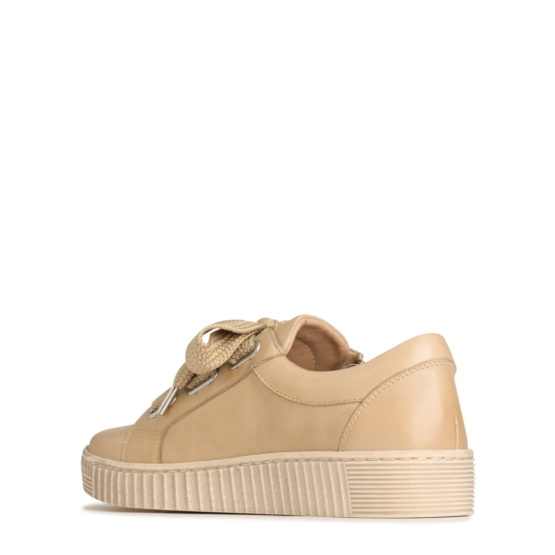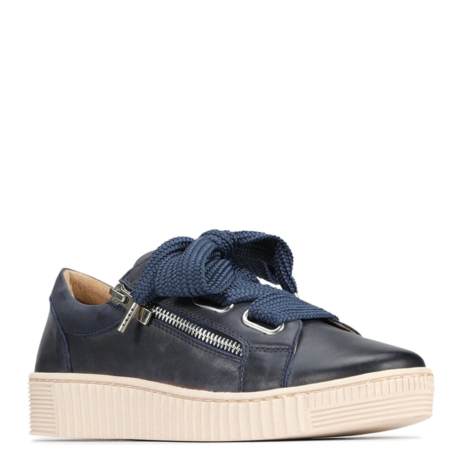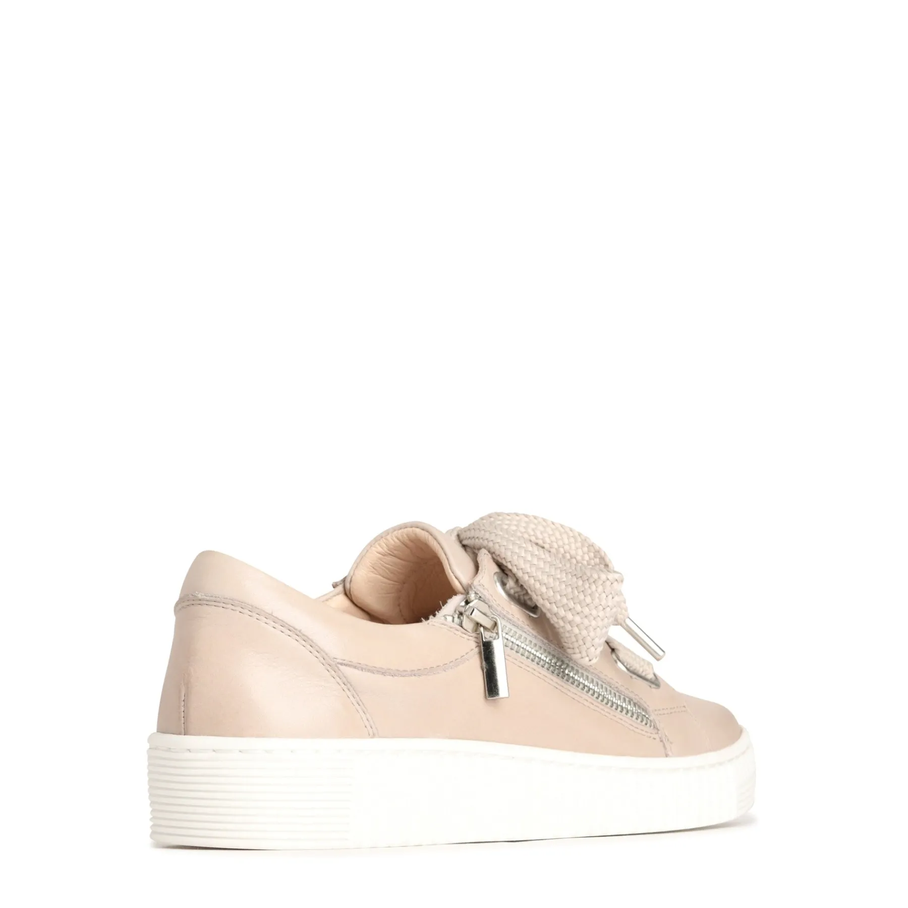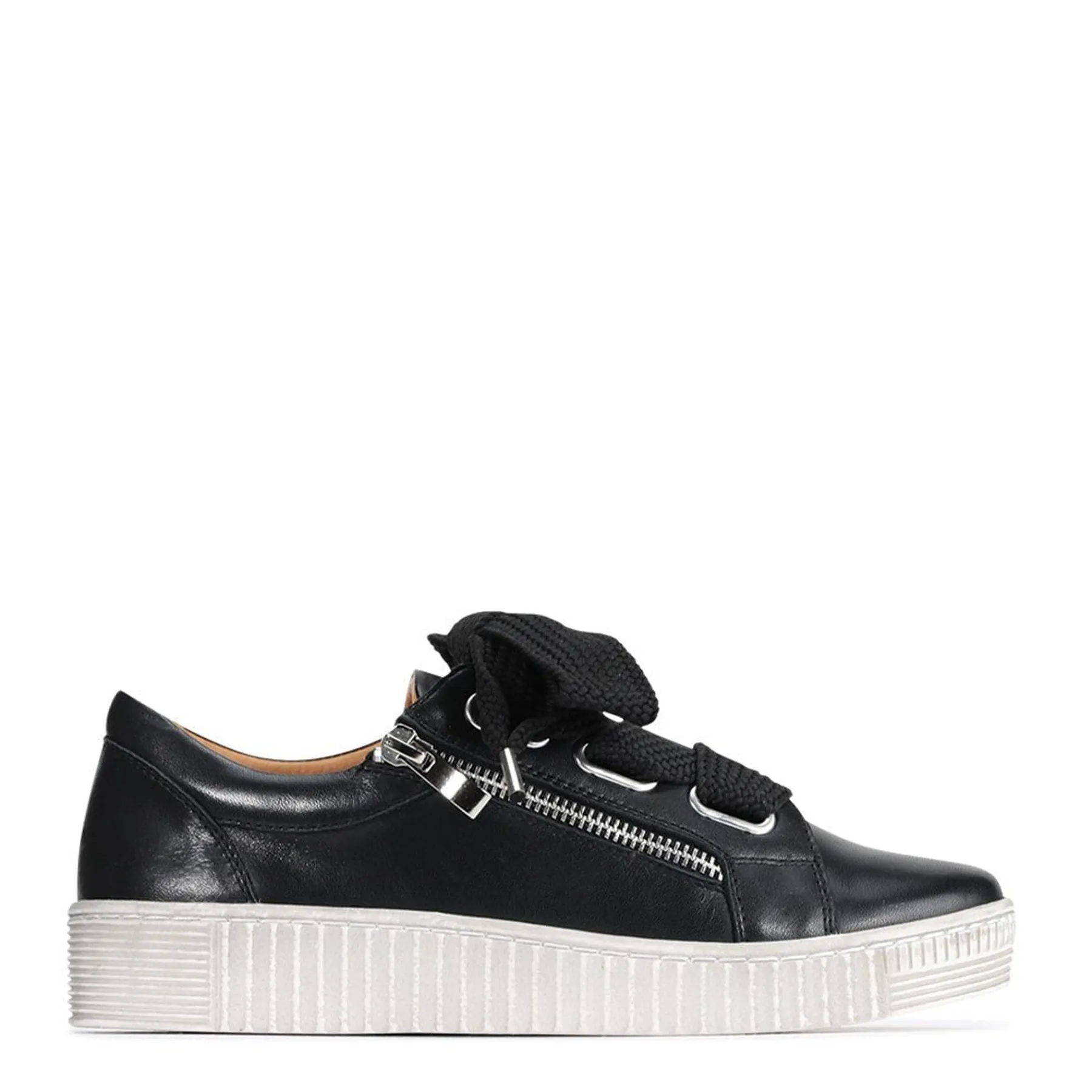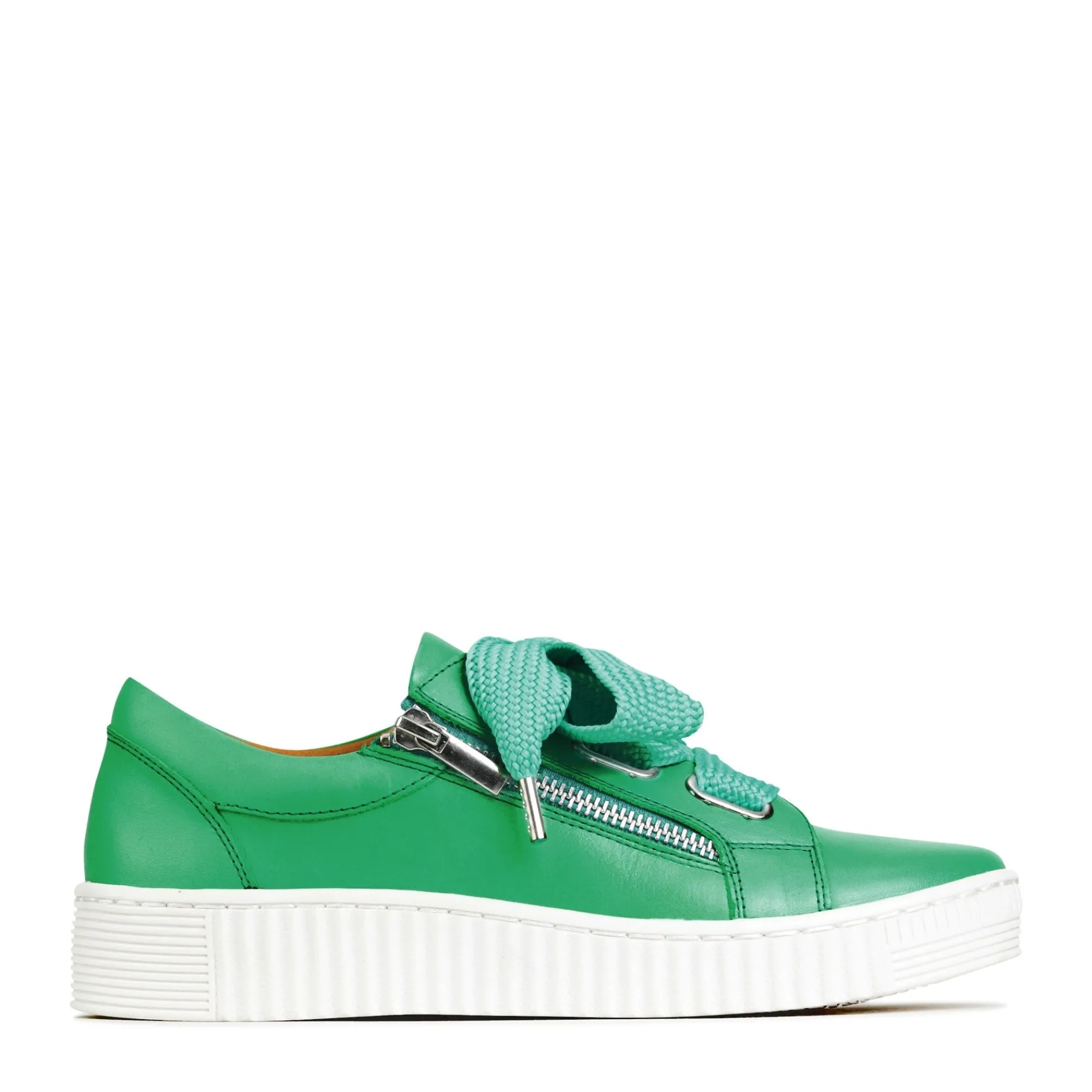 Introducing the JOVI Sneakers SIGNATURE, where style meets convenience. Crafted from soft Cashmere leather made from 100% Aniline Napa, these sneakers are highly breathable for all-day comfort. Featuring an outside zip hardware, these sneakers ensure you never have to tie your shoes again. The oversized statement laces add a bold touch, elevating your look for effortless style every day.
