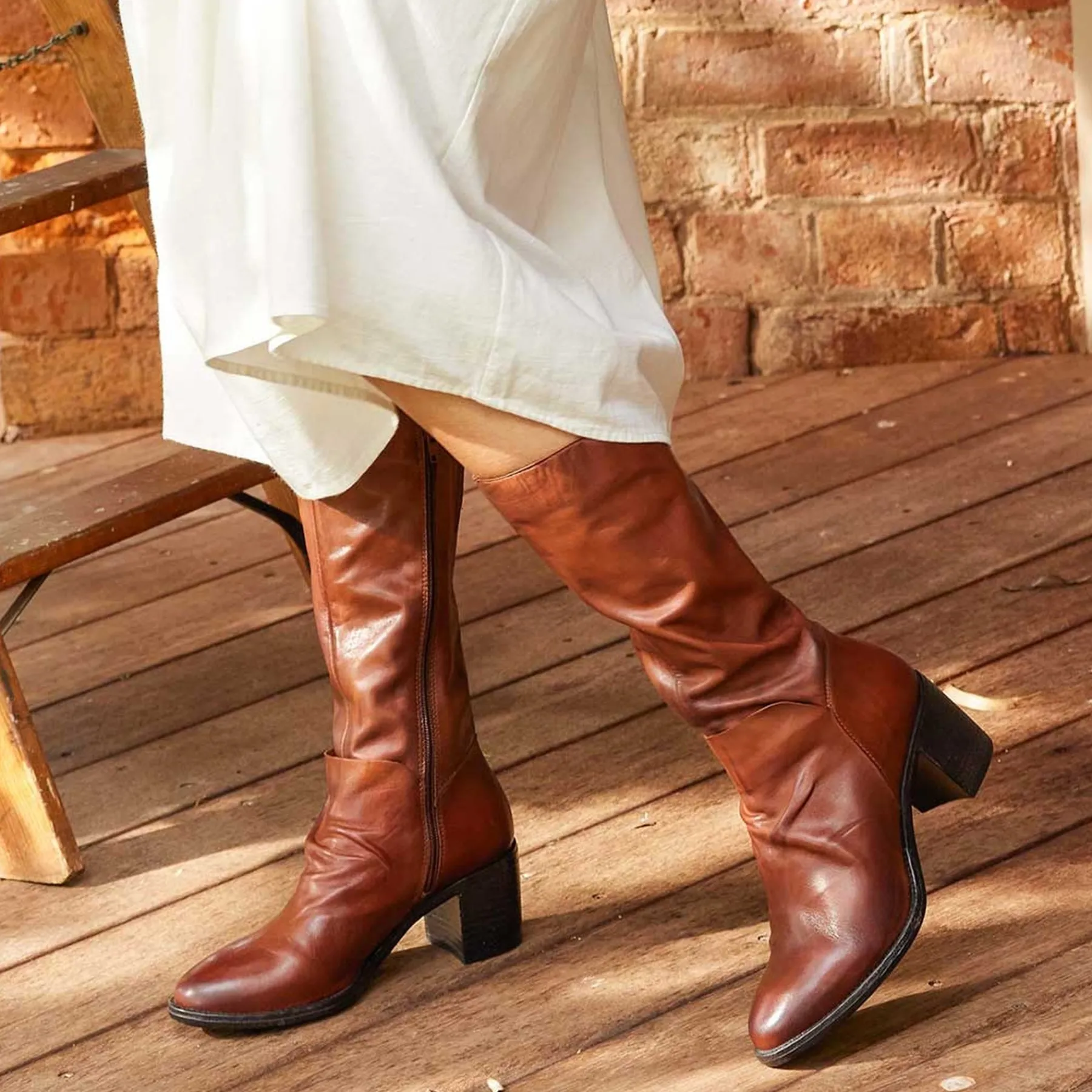 Redefining everyday elegance, these heeled leather calf boots are the long-awaited upgrade to your winter wardrobe. With a structured silhouette and stacked heel, Serafina is an astonishing show of artistry. A gentle wrinkle to the front shows off soft-as-butter Siviglia leather, which is hand-finished for unique texture and tone.