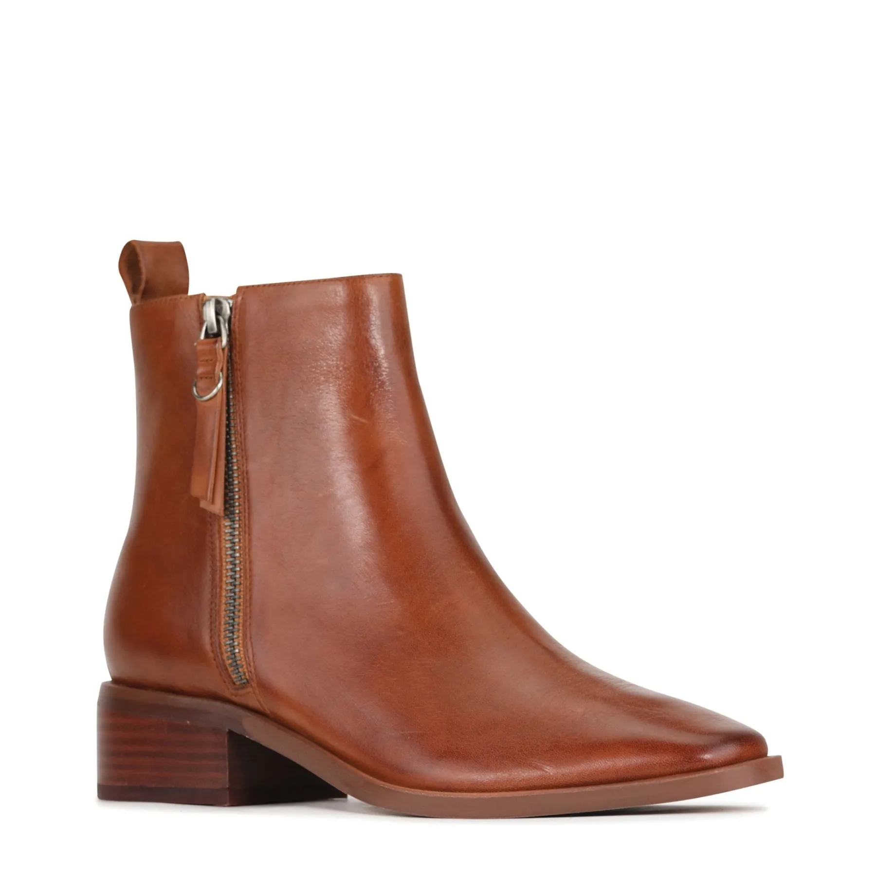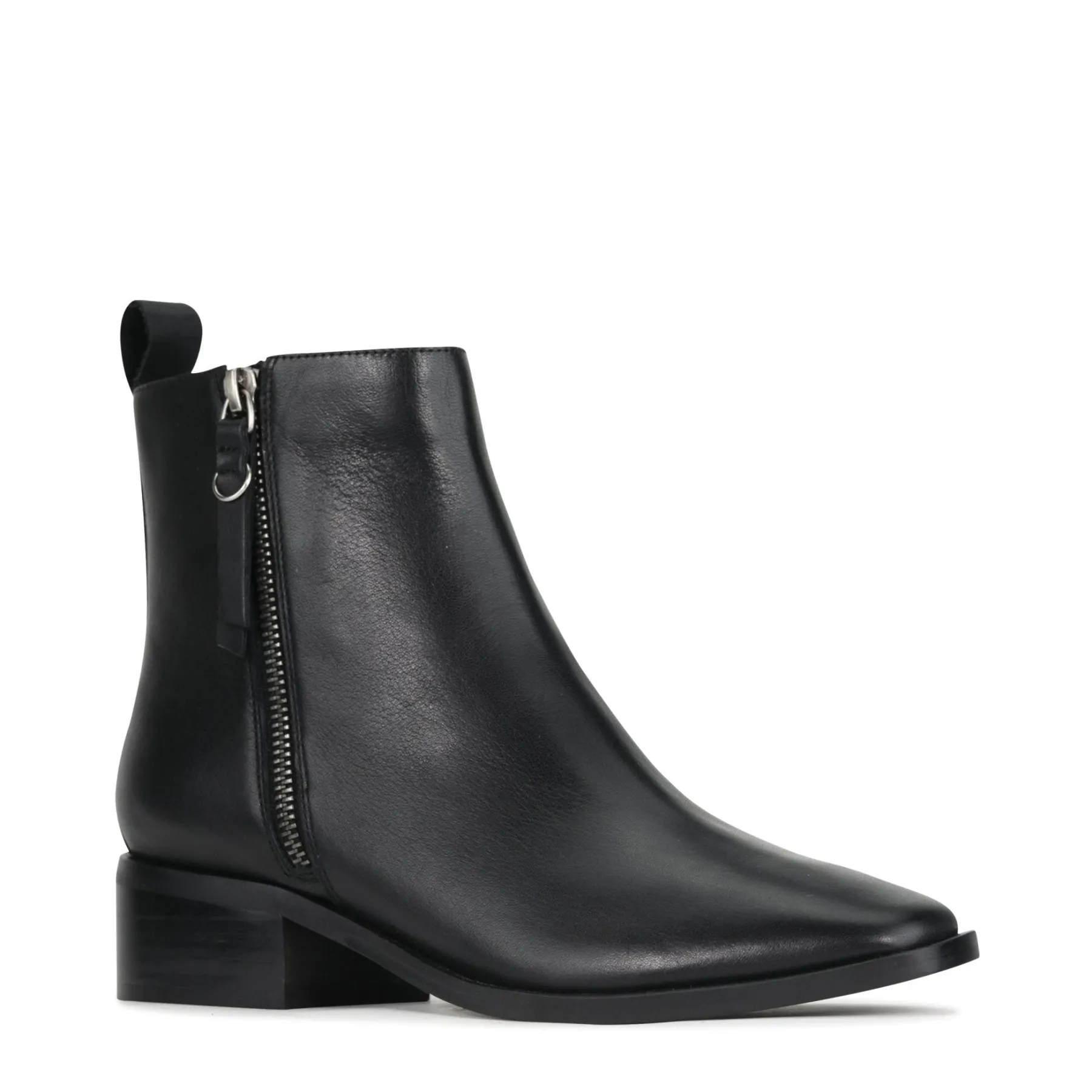 Aleksi is a versatile, chisel toe with a refined ankle boot silhouette that can be dressed up or down. This gorgeous leather boot also features an ergnomically placed double zipper for easy entry.