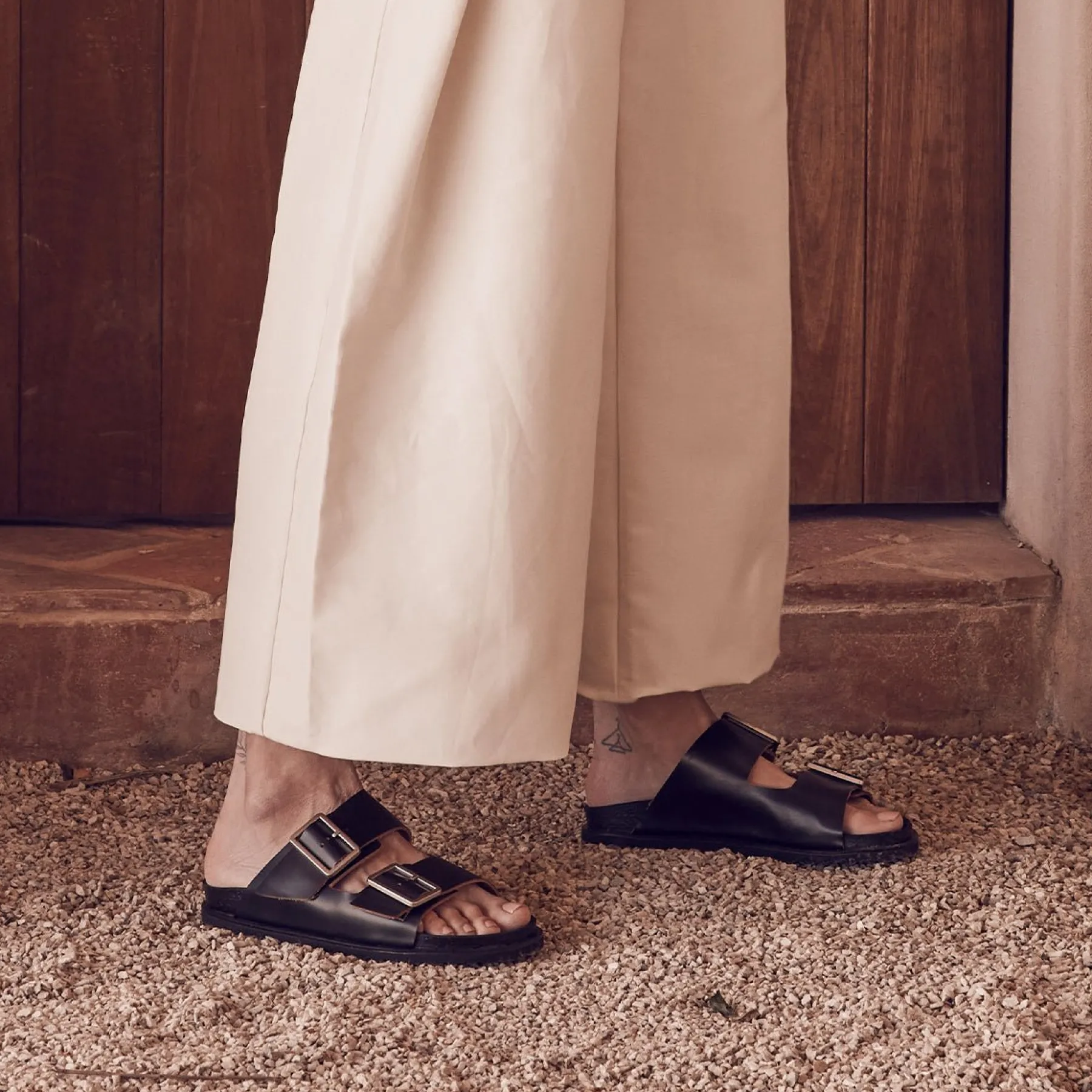 Aging like a fine wine, Floren draws on a timeless profile, modern minimalism, and the strength of its beautifully buffed Vachetta leather. These eternally popular two strap slides are finished with smart, square, adjustable buckles and a footbed that mirrors the silhouette of your soles. No-fuss functionality at its best, easily elevated with the use of luxe materials.