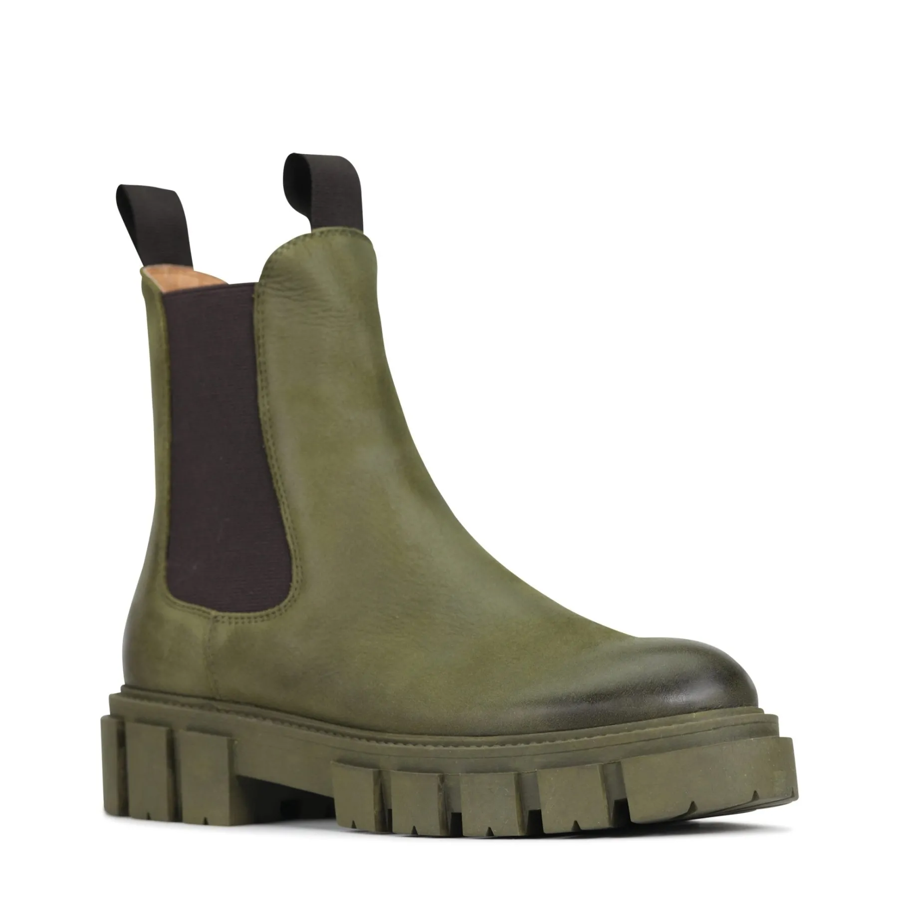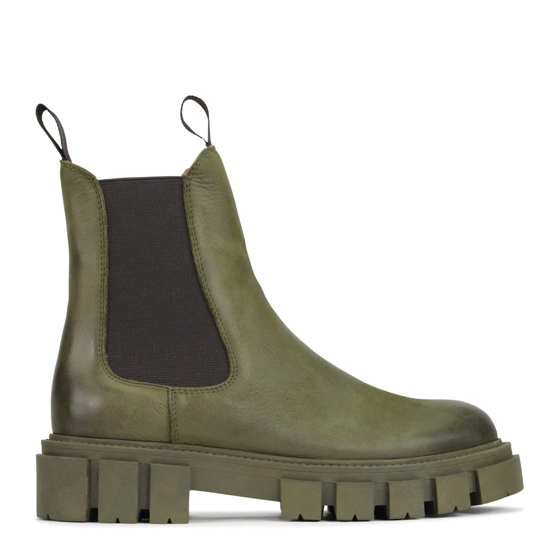 A true feat of shoe tailoring and quality craftsmanship, the Femme Chelsea ankle boots are a unique take on utility styling. Oversized elastic inserts pair perfectly with the bold rubber sole for a shoe that’s as much about form as it is function. Easily slip them on and off using the double loop toggle to the front and the rear. Crafted with elegant Italian Cashmere or Nubuck leather, these minimal style boots are enhanced by hand-finished vintage oil upper that is a quintessential EOS touch.