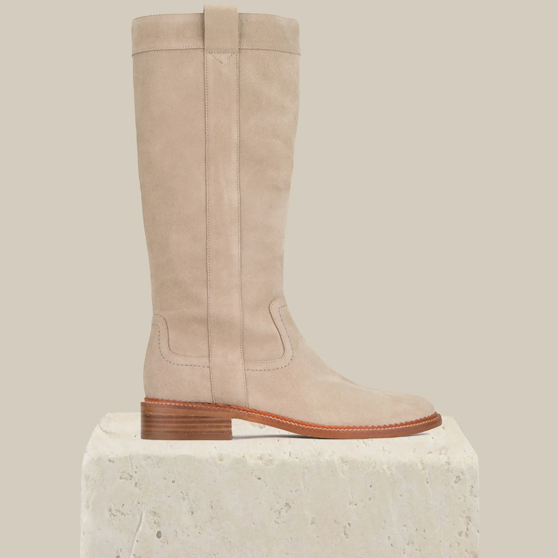 The beauty is in the detail with EOS’ Karmine mid-high boots. A leather rand is delicately gimped around the outsole while luxurious suede leather and satin gently wrap your foot. Their simple paired back silloutte is complimented by a delicate almond toe and discreet side zipper. Inspired by the city streets, let Karmine bring some added shine to your ensemble.