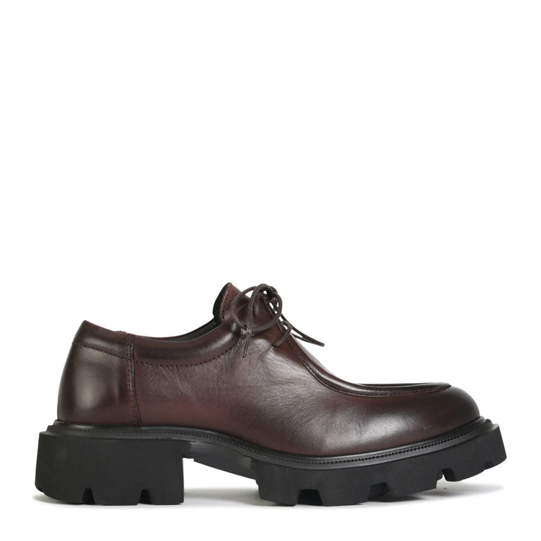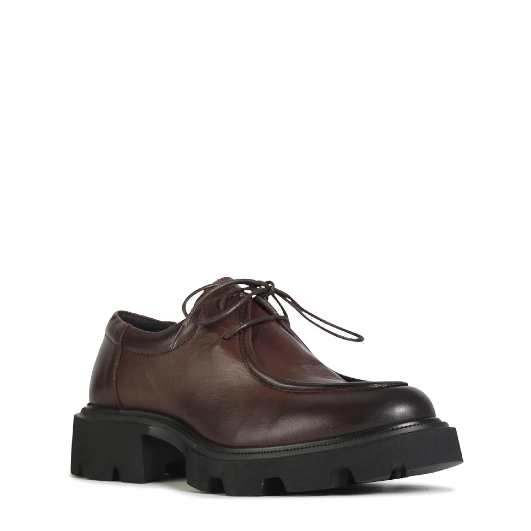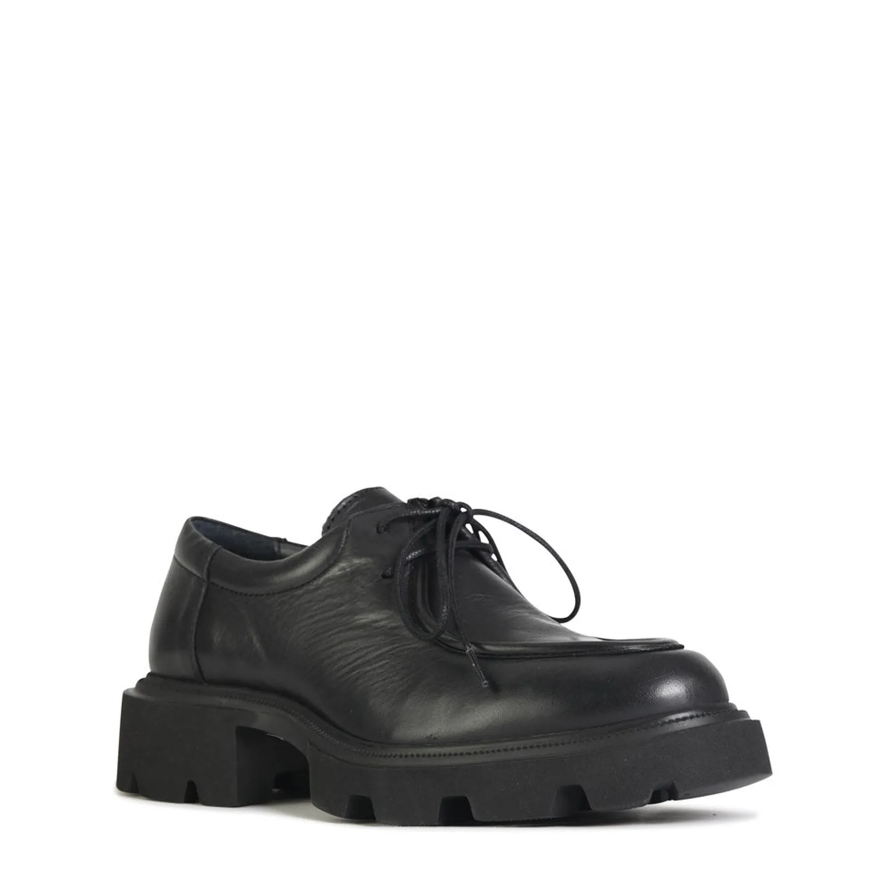 Indulge in luxury with TESS, the lace-up Derby made in Portugal. Featuring a rugged chunky lug outsole with 40 mm heel and crafted in Siviglia soft leather, this shoe exudes sophistication. The round moc toe and minimalist detailing add a touch of elegance to this exclusive piece.