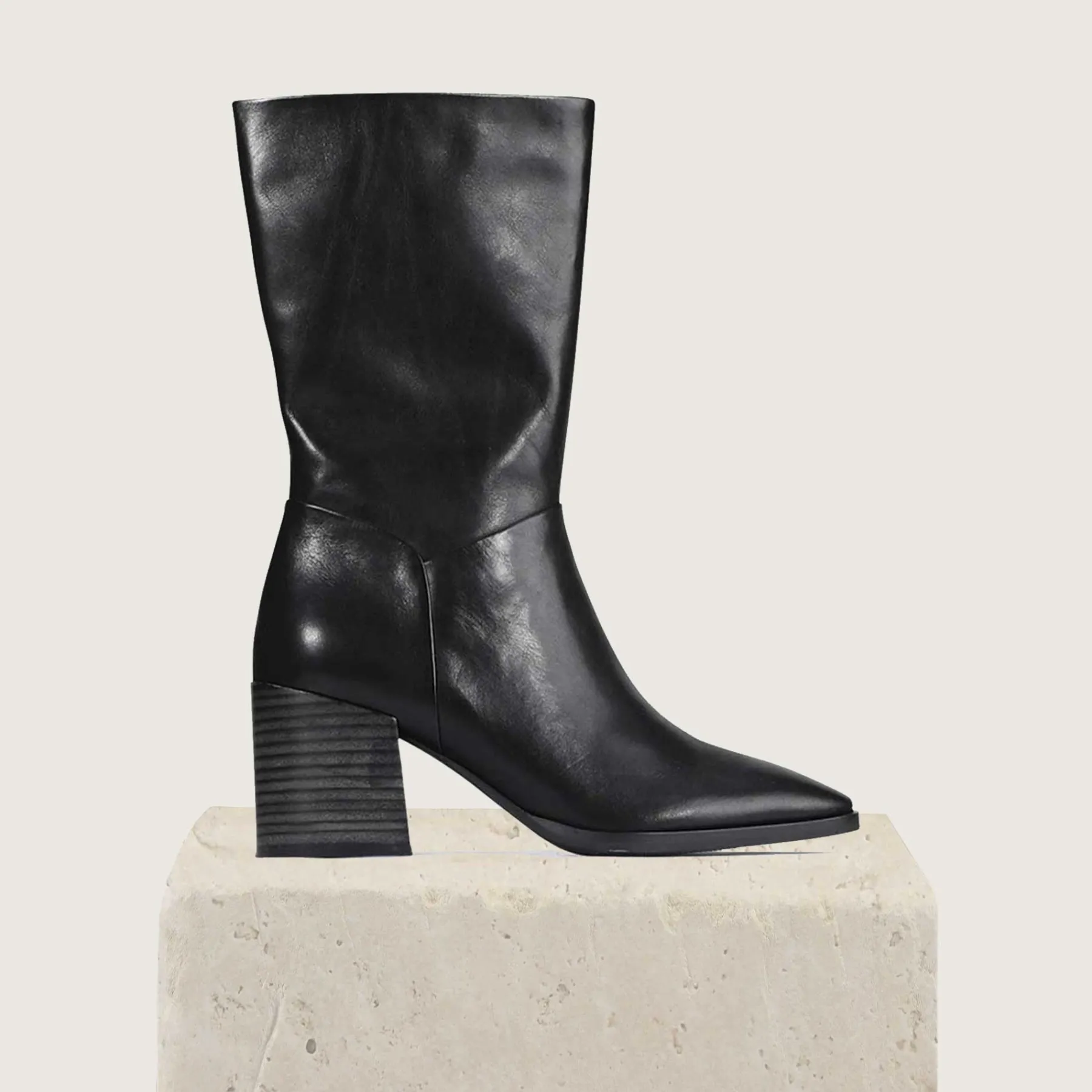 Crafted from our favourite full-grain aniline leather, Keomi celebrates the rich complexity of this artisanal textile. Fastened with a full side zip and elevated with a comfortable block heel, these mid calf leather boots look equally chic with jeans or skirts. The supple material will soon flex to the unique curves of your feet, with a wide fit around the calf for added comfort.
