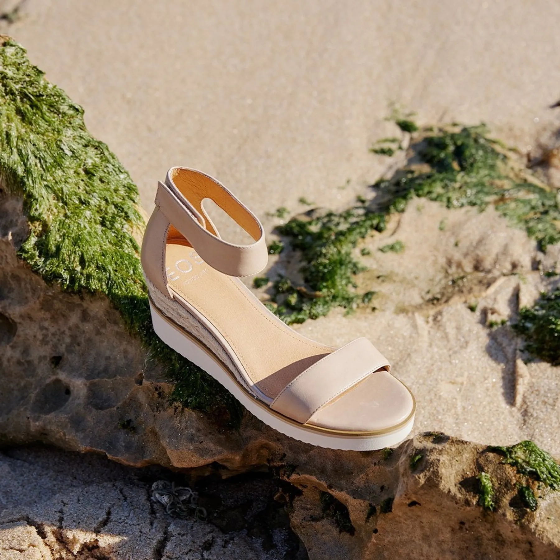 This lightweight Espadrille style wedge is easy and breezy and perfect for those hot summer days. This back in sandal cradles your foot and keeps it strapped in for support and comfort, and you will love the high-quality aniline full-grain calf leather and cashmere materials.