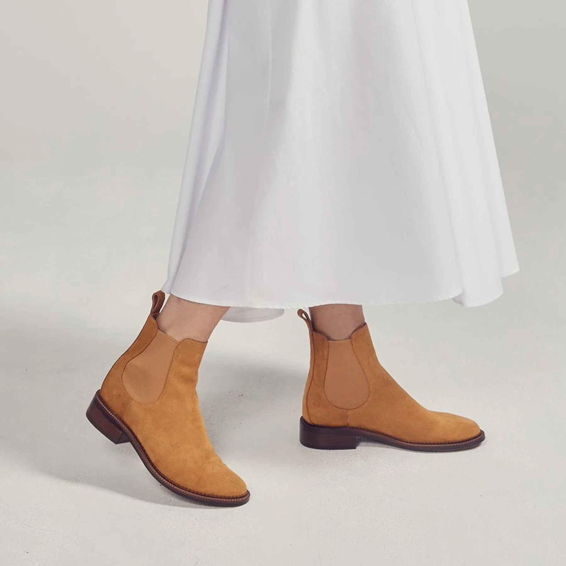 The beauty is in the detail with KARLA chelsea boots. A leather rand is delicately gimped around the outsole while luxurious cashmere leather (or suede) and satin gently wrap your foot. Their simple paired back silloutte is finished off with double elastic gussets and rear pull tab. Step out in timeless style with this seasons head turning Karla boots.