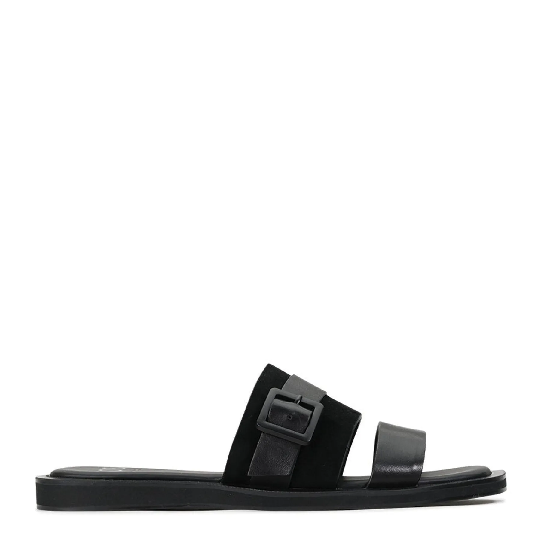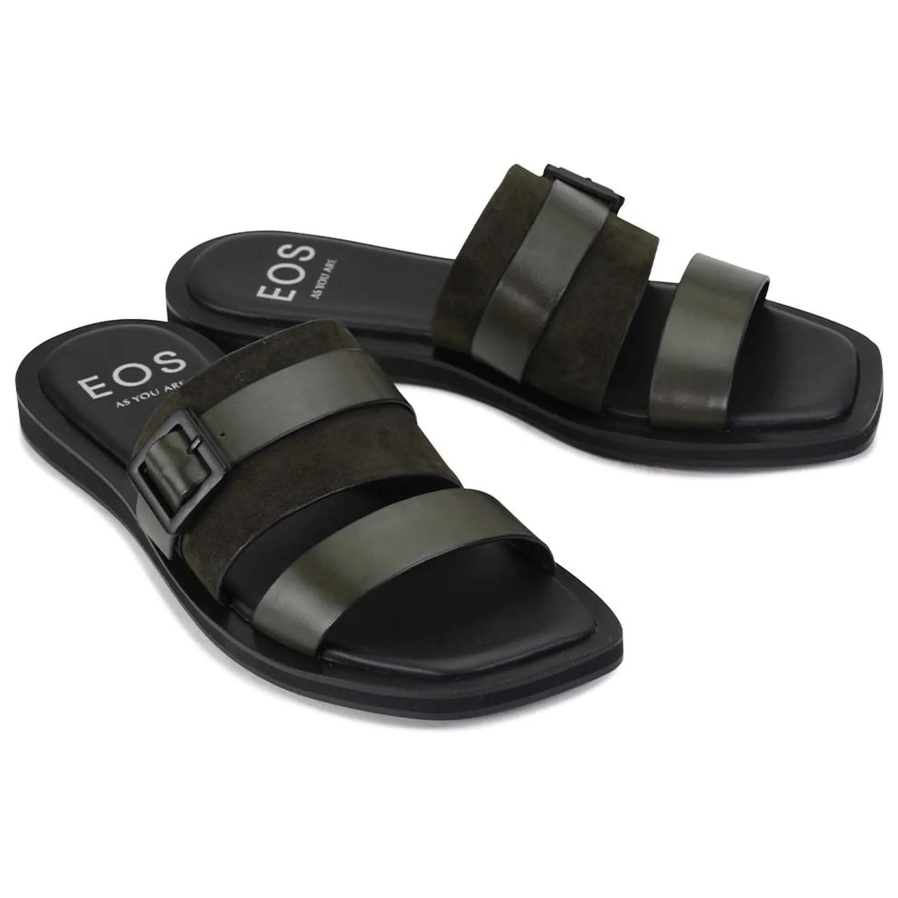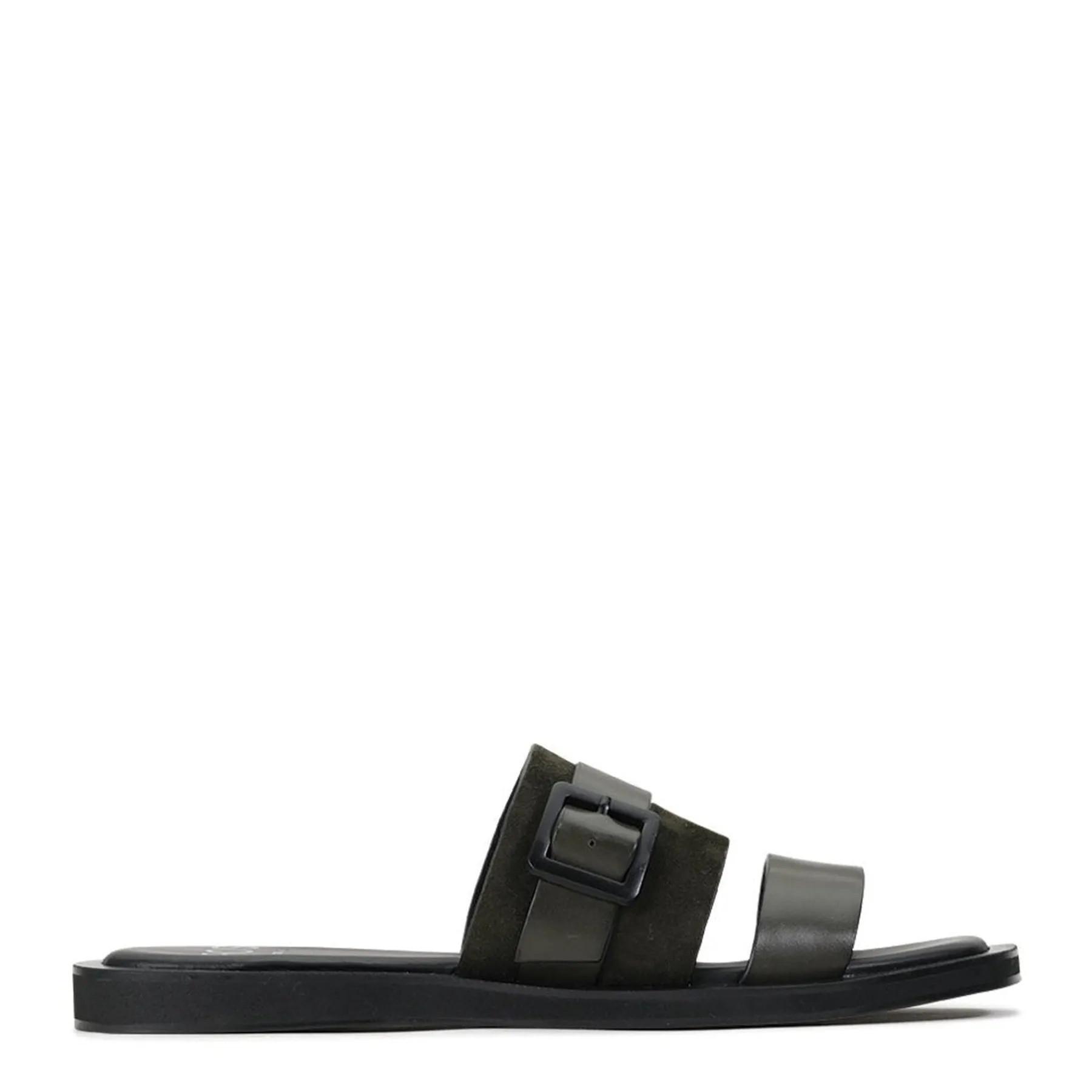 Here, a timeless two-strap profile has been refined with sumptuous suede detailing. On top, these slip on sandals feature bold leather straps with a smart black buckle. Underneath, you’ll find a padded sole with a stylish square toe and a surprising level of support, whether you slide them on to head to the shops or for casual social occasions.