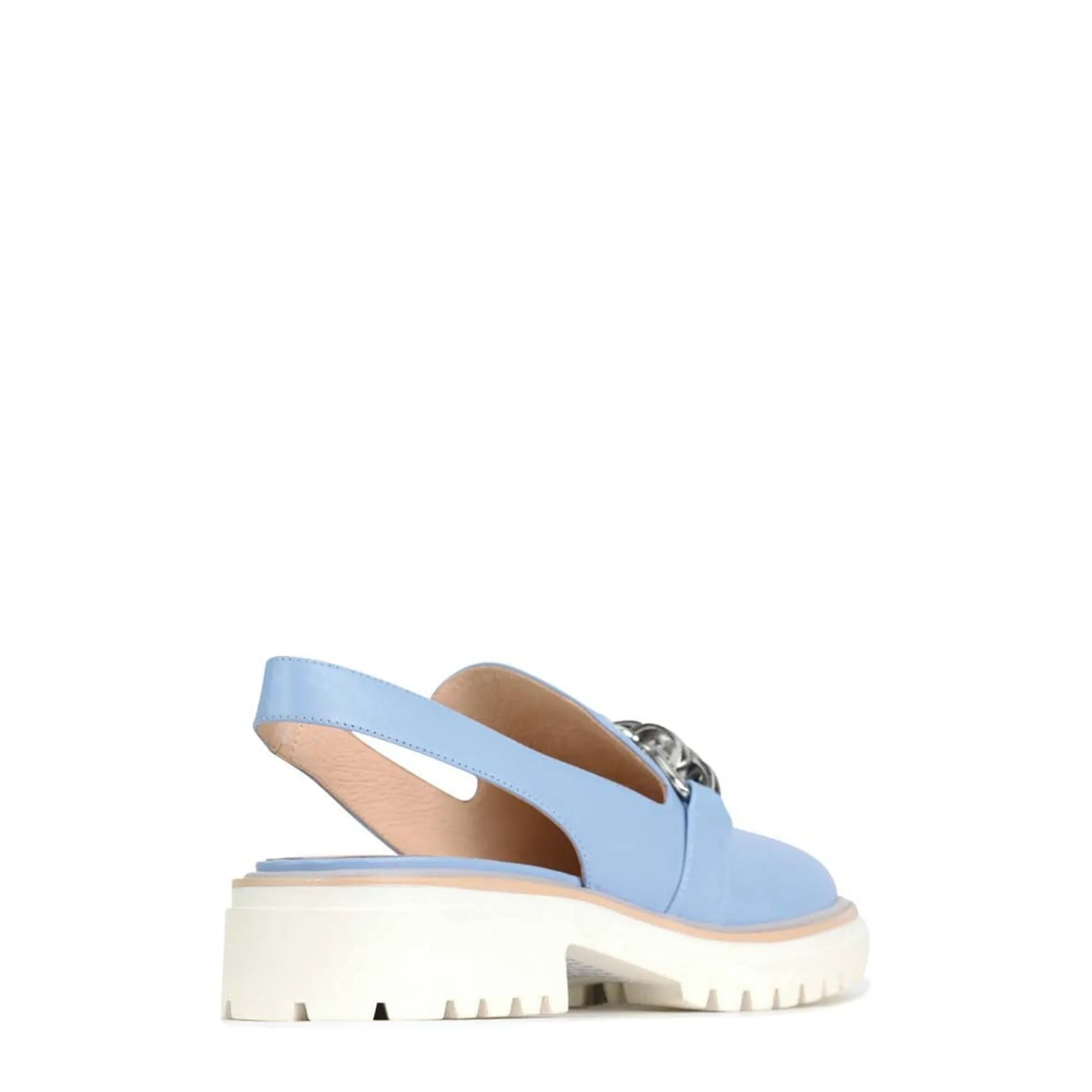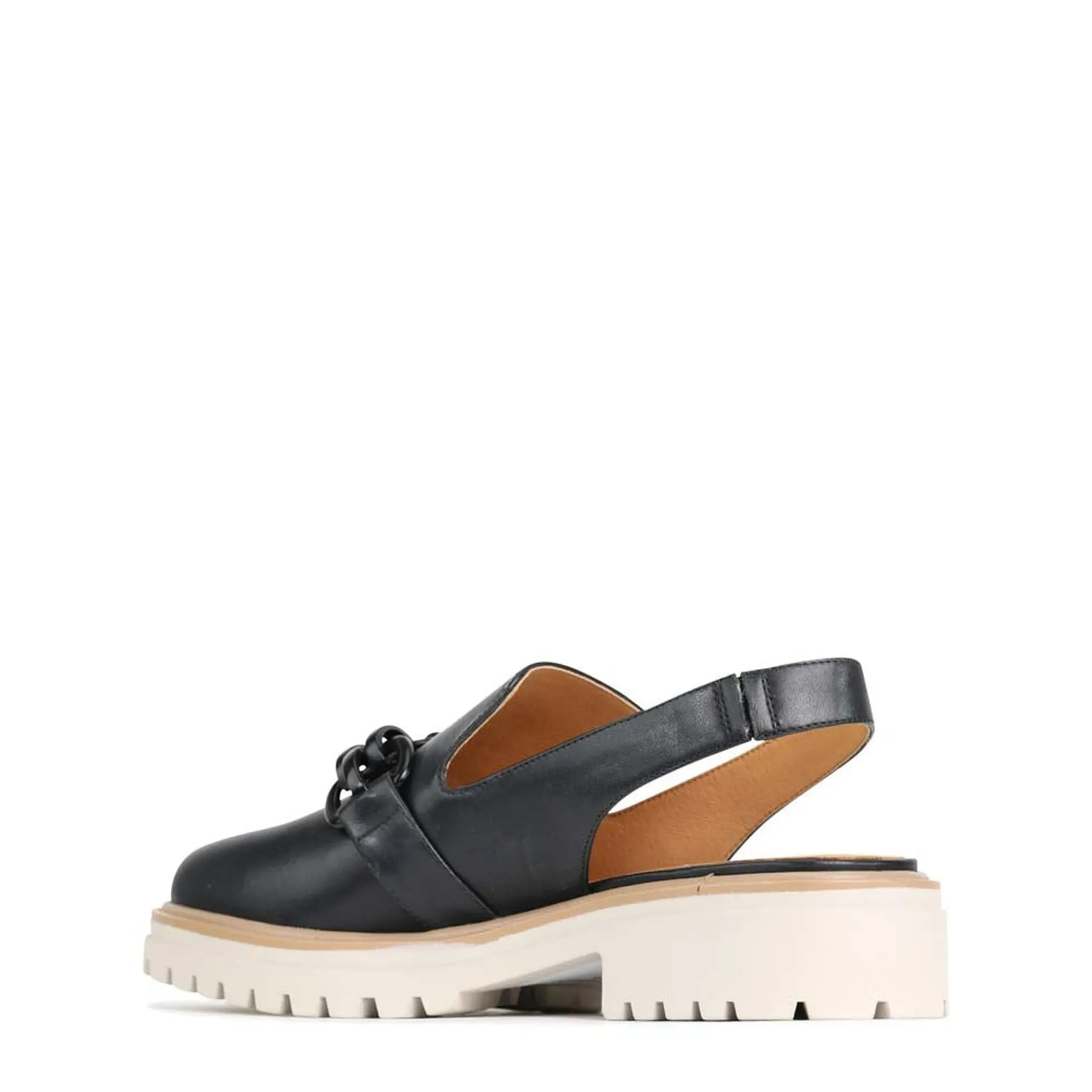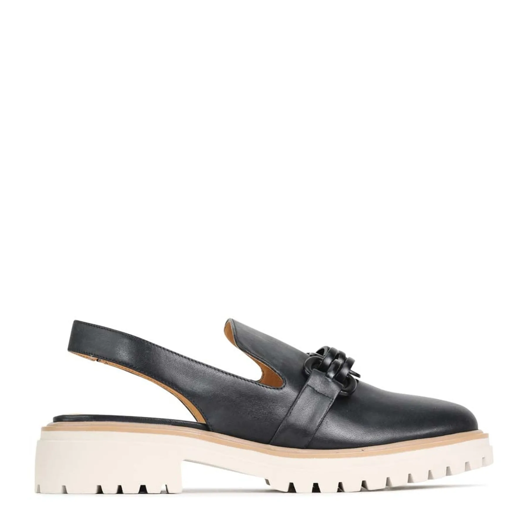 Elevate your look with the timeless elegance of ANI. Crafted with a luxe leather upper and a chunky 35mm heel, these slingback loafers bring sophistication and glamour with their smart loafer style and eye-catching metal chain detail. A must-have for your wardrobe, ANI adds the perfect touch of timeless luxury.