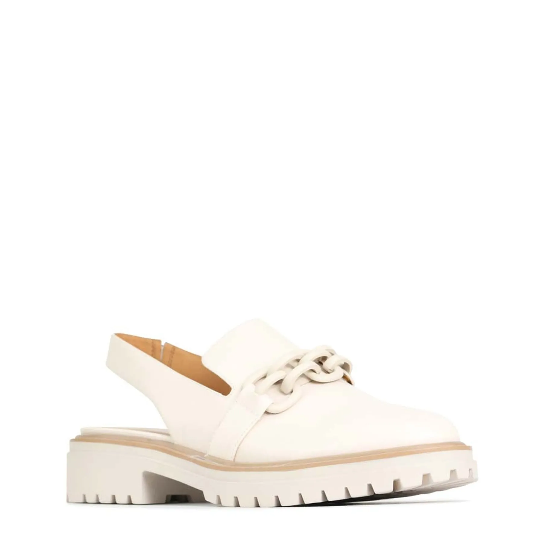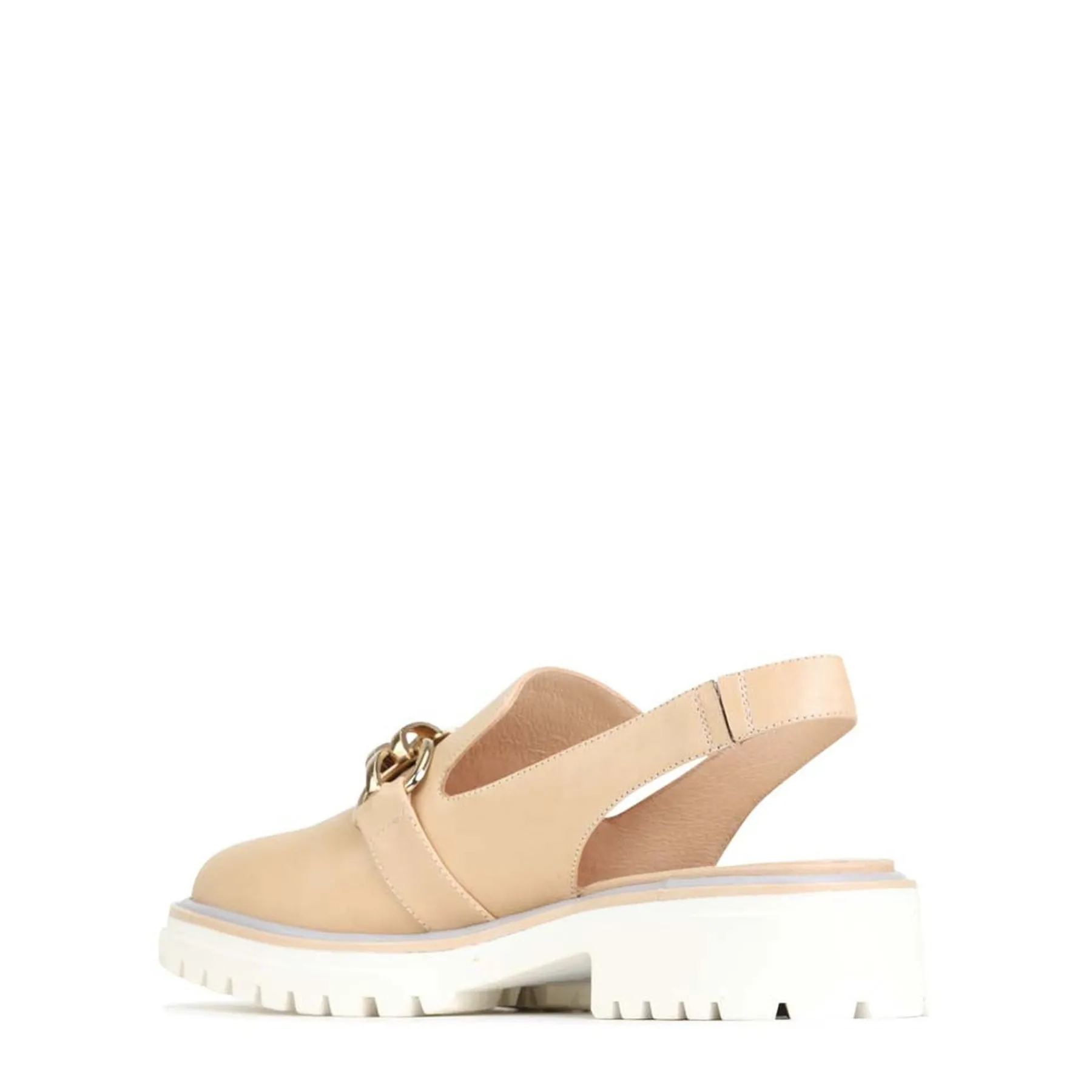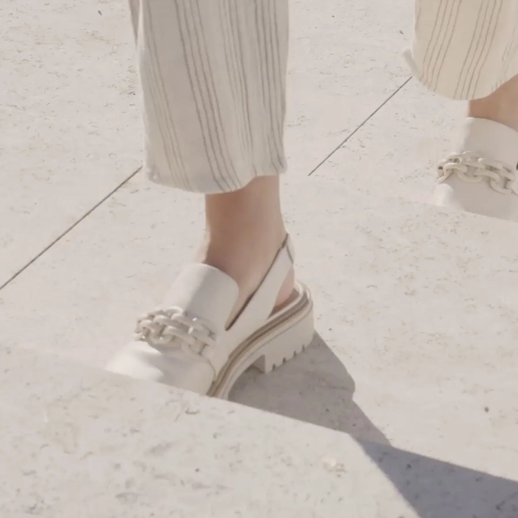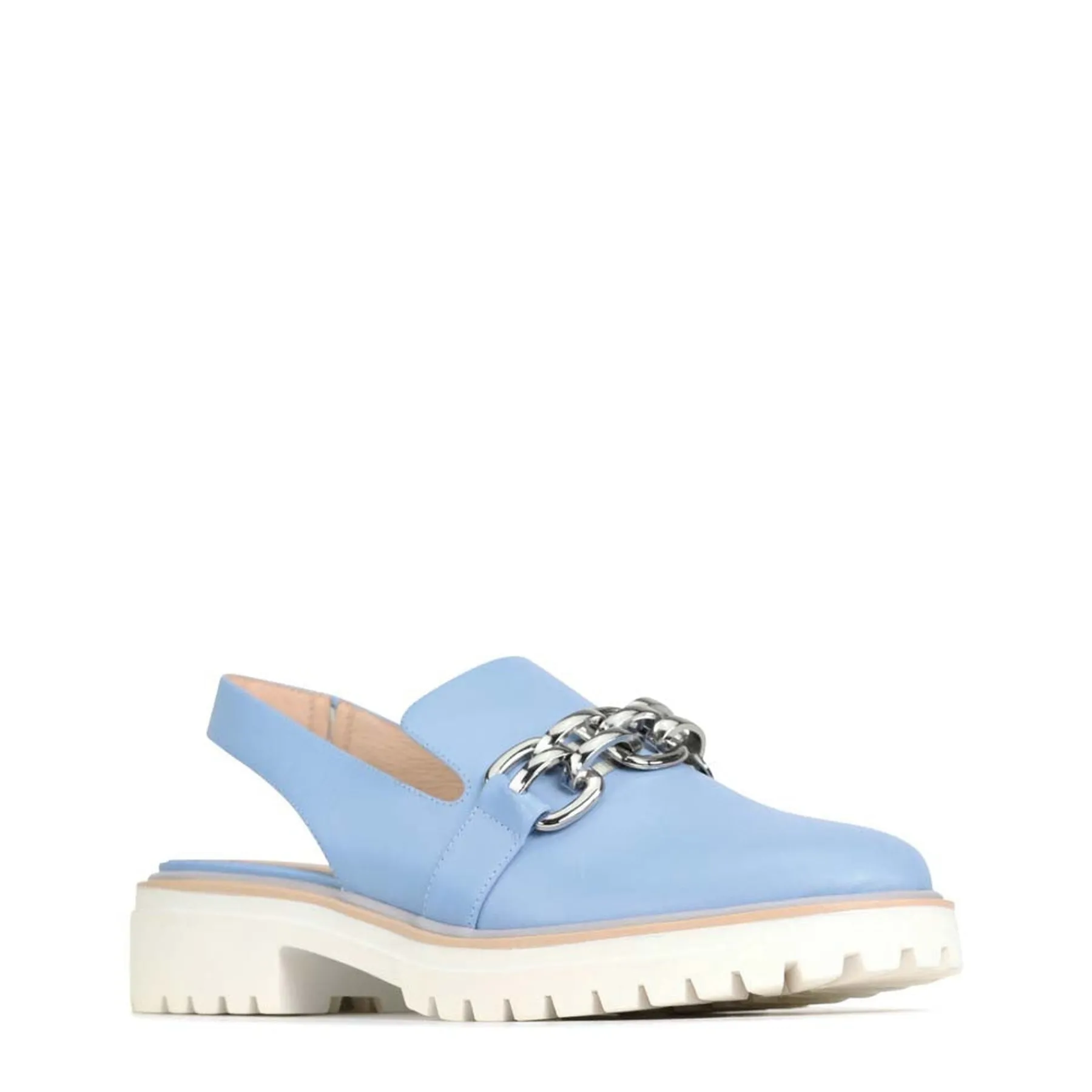 Elevate your look with the timeless elegance of ANI. Crafted with a luxe leather upper and a chunky 35mm heel, these slingback loafers bring sophistication and glamour with their smart loafer style and eye-catching metal chain detail. A must-have for your wardrobe, ANI adds the perfect touch of timeless luxury.