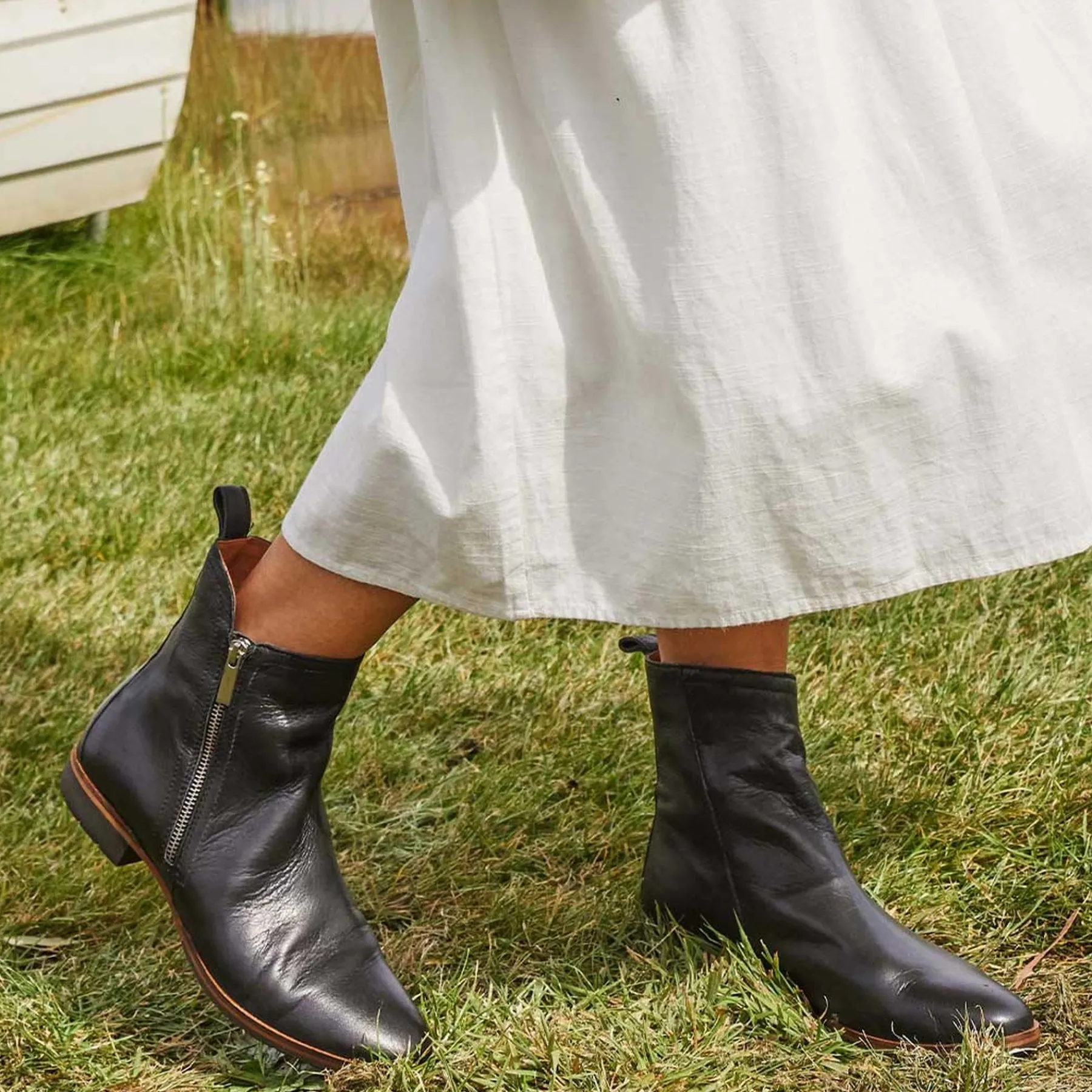 Give it up for Gaites, the beautifully made ankle boot which brings comfort and grace in equal measure. A striped sole and slanted asymmetric collar add elegance, while the ergonomic design helps your heel stays supported. Subtle lugs on the tread give greater traction on slippy or rough terrain.