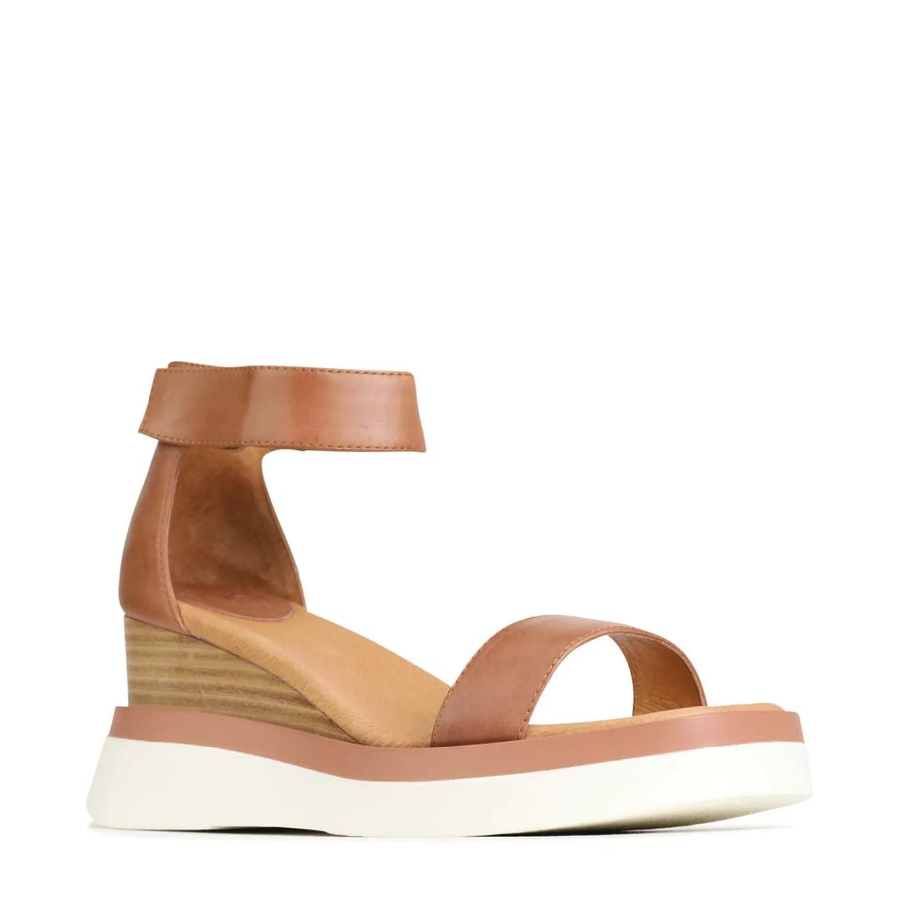 Capture the essence of timeless elegance with SASKINA wedge sandals. Crafted from luxurious Cashmere or Blanco leather, this classic single toe strap sandal features a closed counter and adjustable velcro ankle strap. Its 75mm stacked wedge heel ensures a subtle lift while maintaining a sophisticated look.